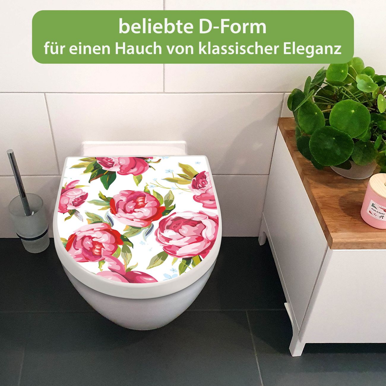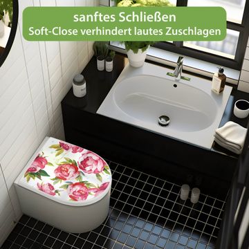 WC Sitz mit Absenkautomatik D Form Motiv Rosen Rustikal