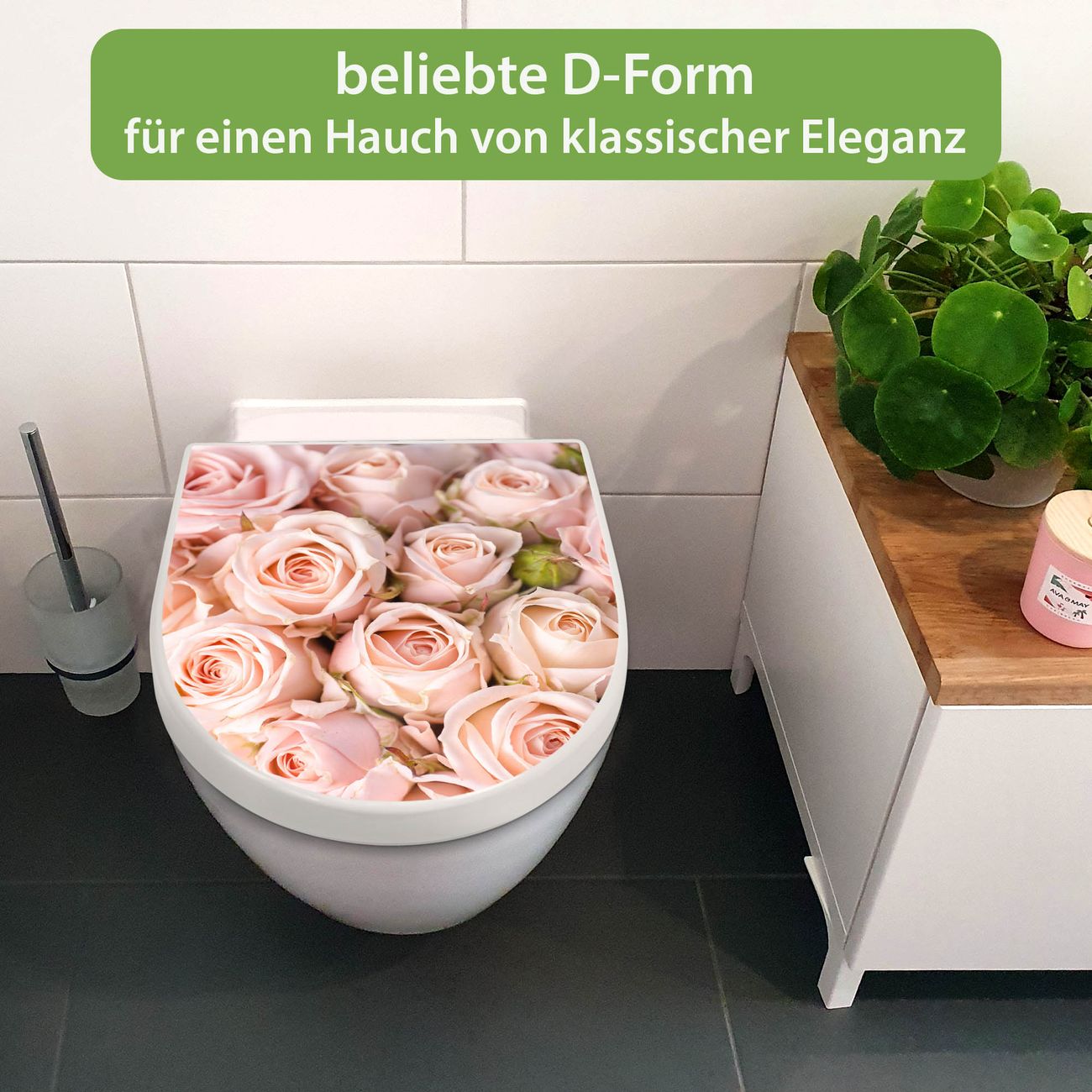 WC Sitz mit Absenkautomatik D Form Motiv Rosenbouquet