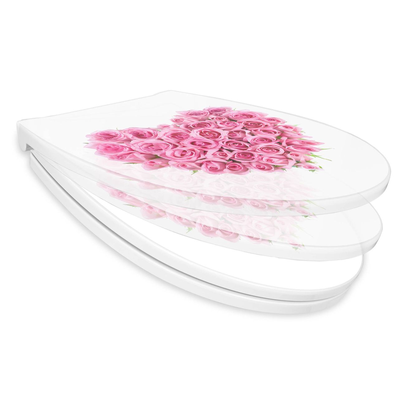 Premium WC-Sitz Softclose Absenkautomatik Motiv Rosenherz