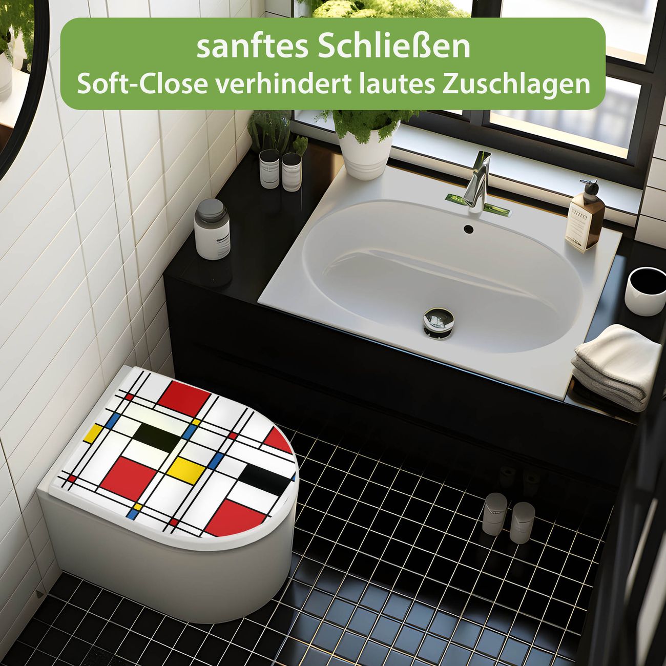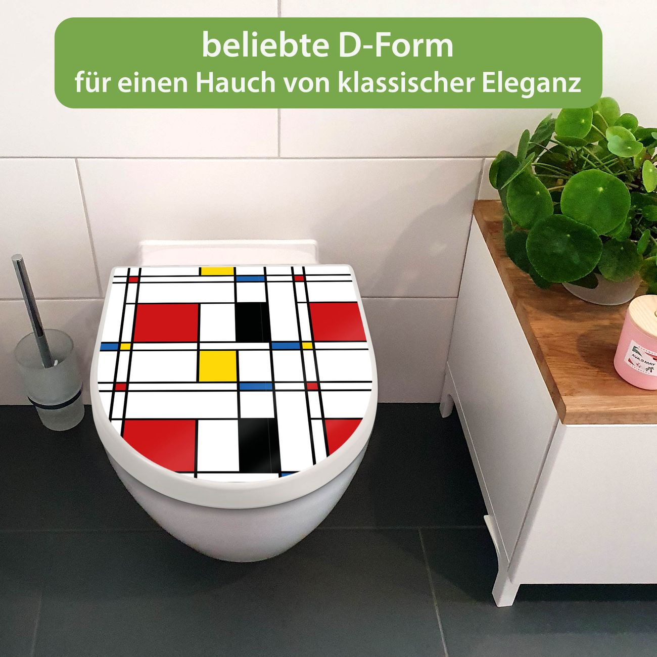 WC Sitz mit Absenkautomatik D Form Motiv Rot Gelb Blau