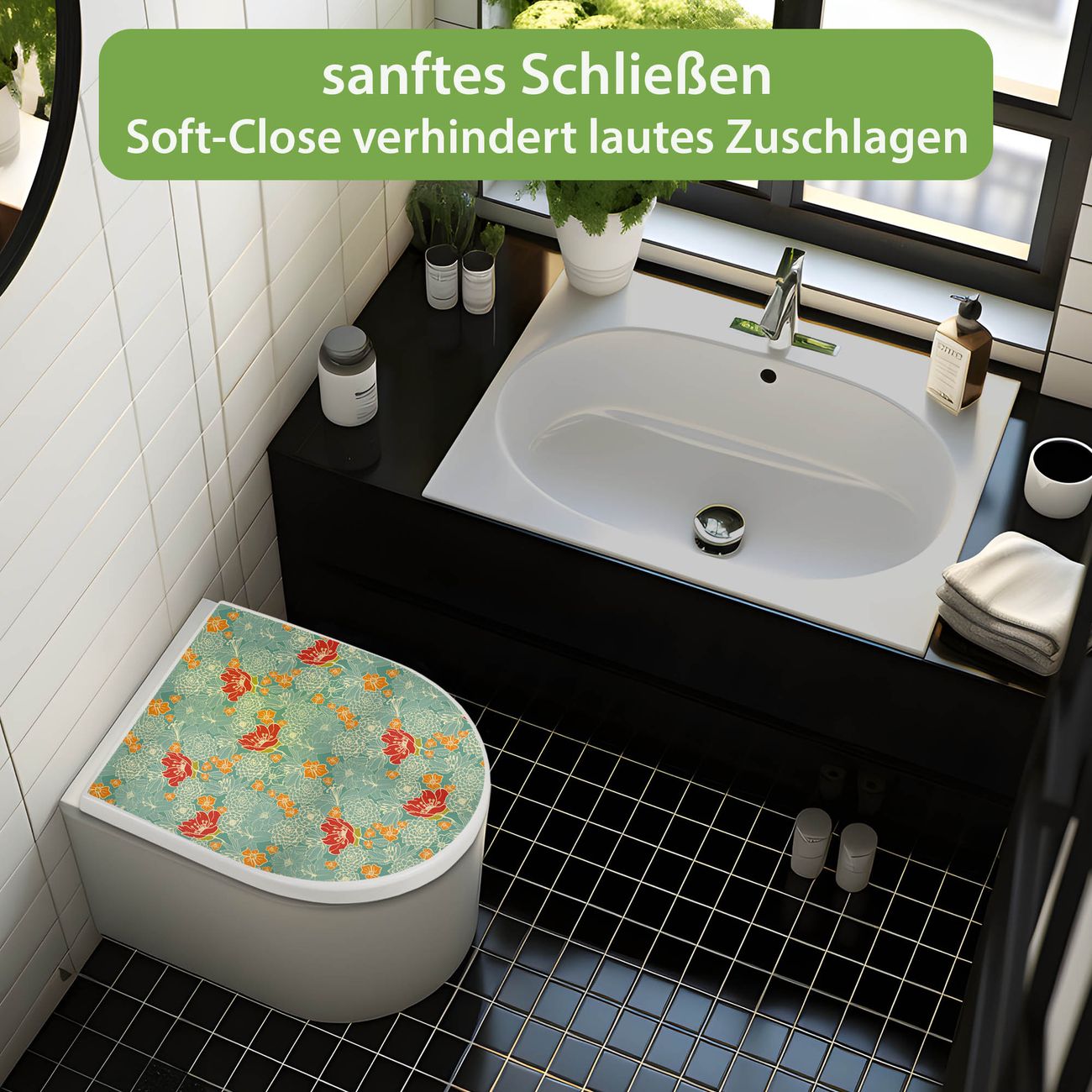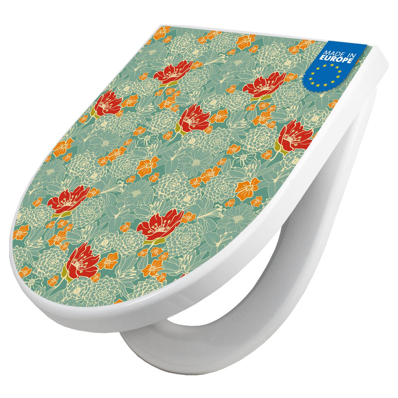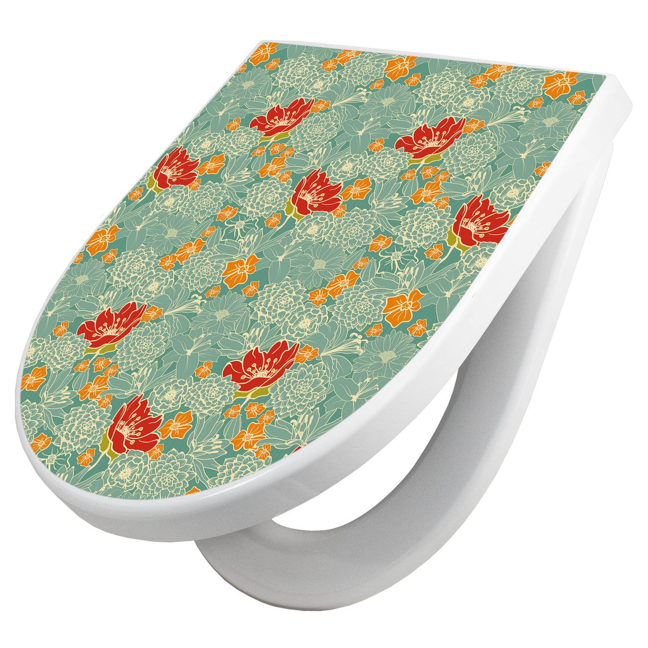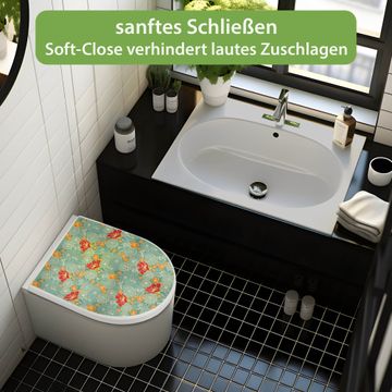 WC Sitz mit Absenkautomatik D Form Motiv Rote Blumen