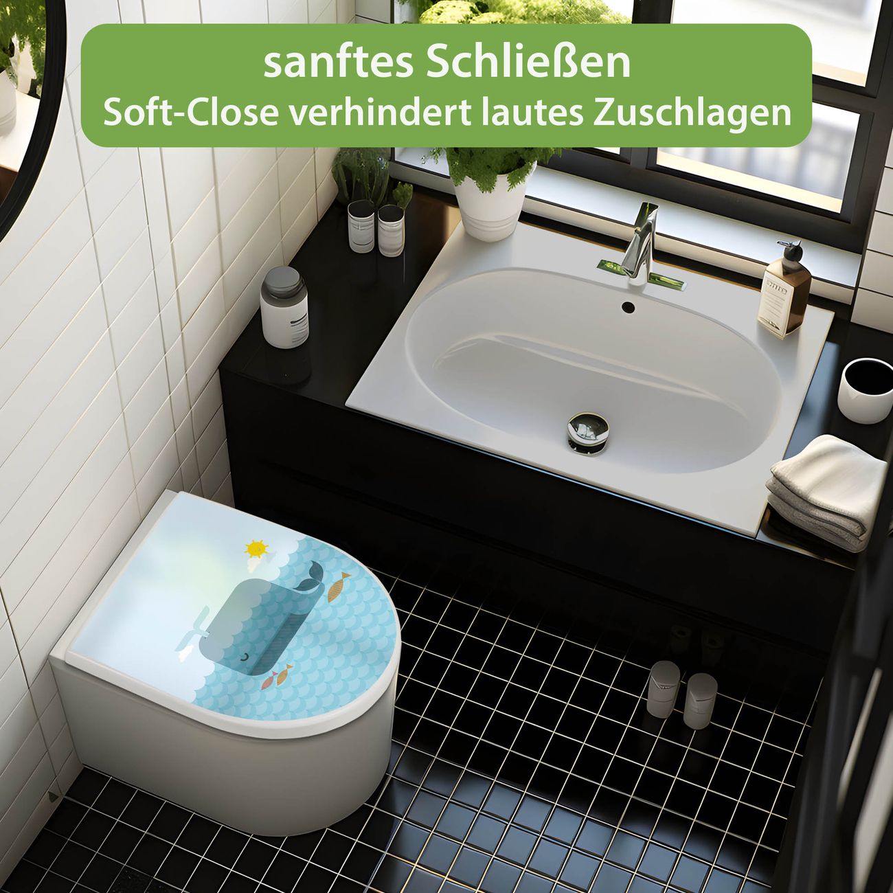 WC Sitz mit Absenkautomatik D Form Motiv Schlafender Wal