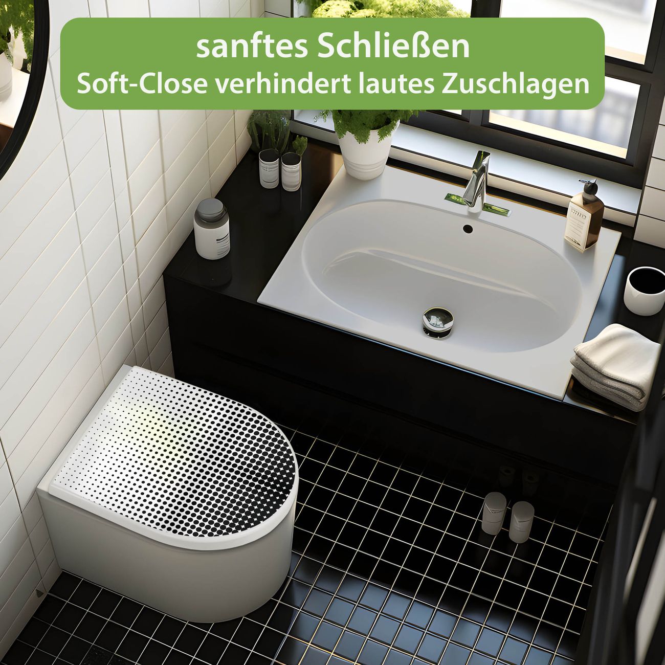 WC Sitz mit Absenkautomatik D Form Motiv Schwarz Weiß