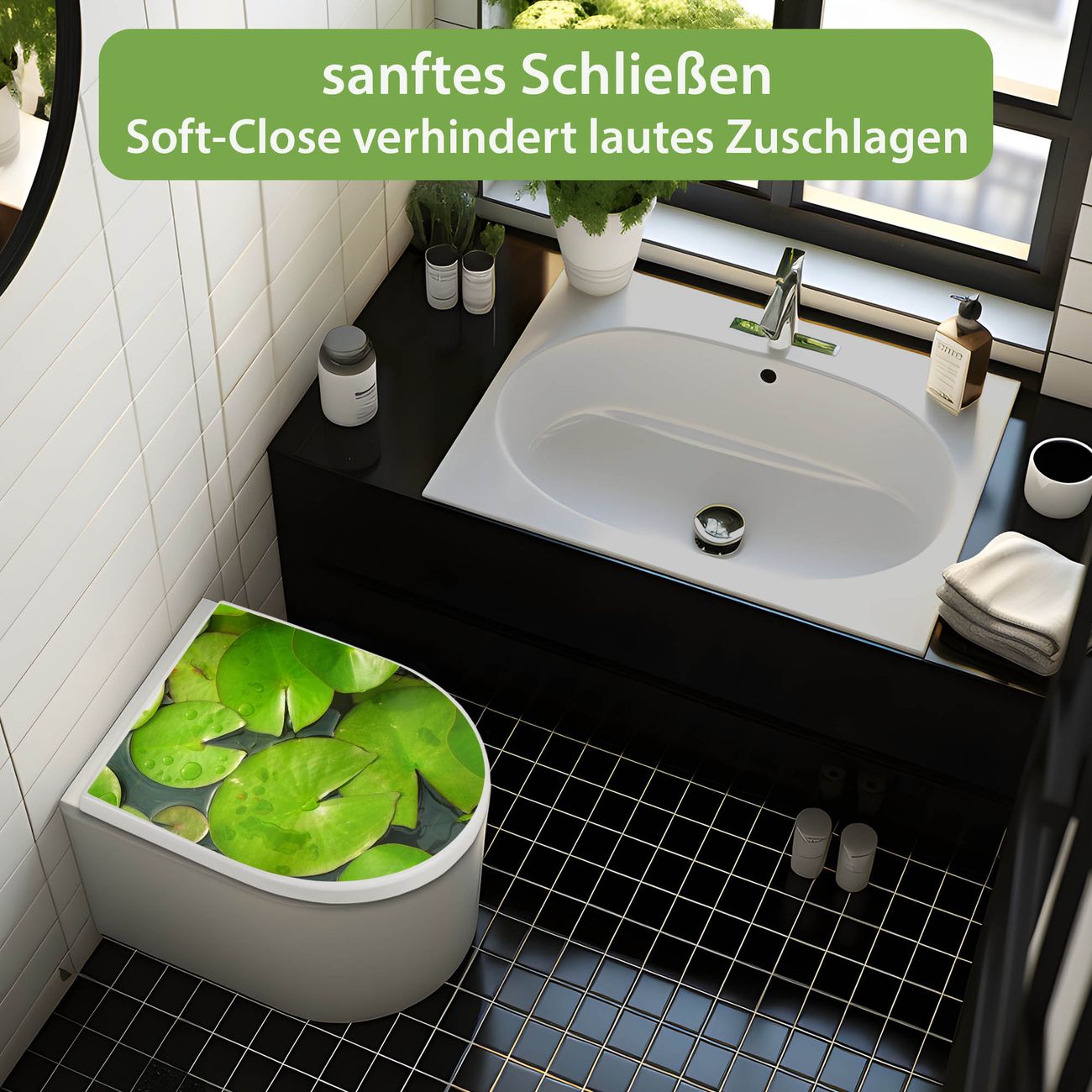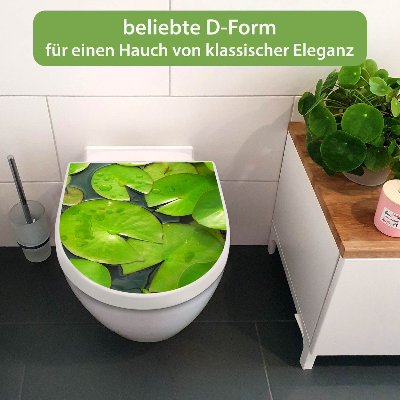 WC Sitz mit Absenkautomatik D Form Motiv Seerosenblätter
