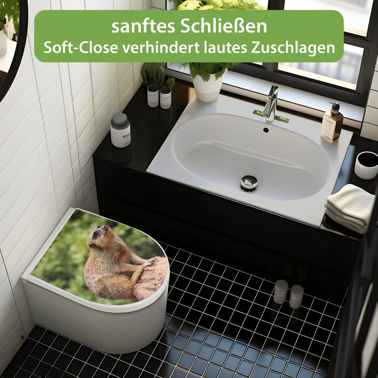 WC Sitz mit Absenkautomatik D Form Motiv Sitzendes Erdmännchen