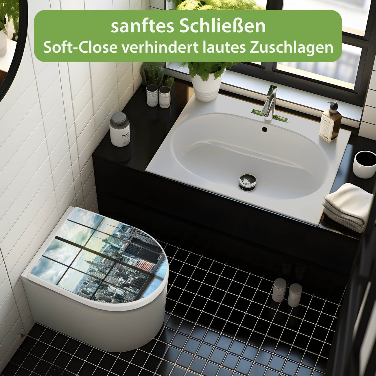 WC Sitz mit Absenkautomatik D Form Motiv Skyline Manhattan