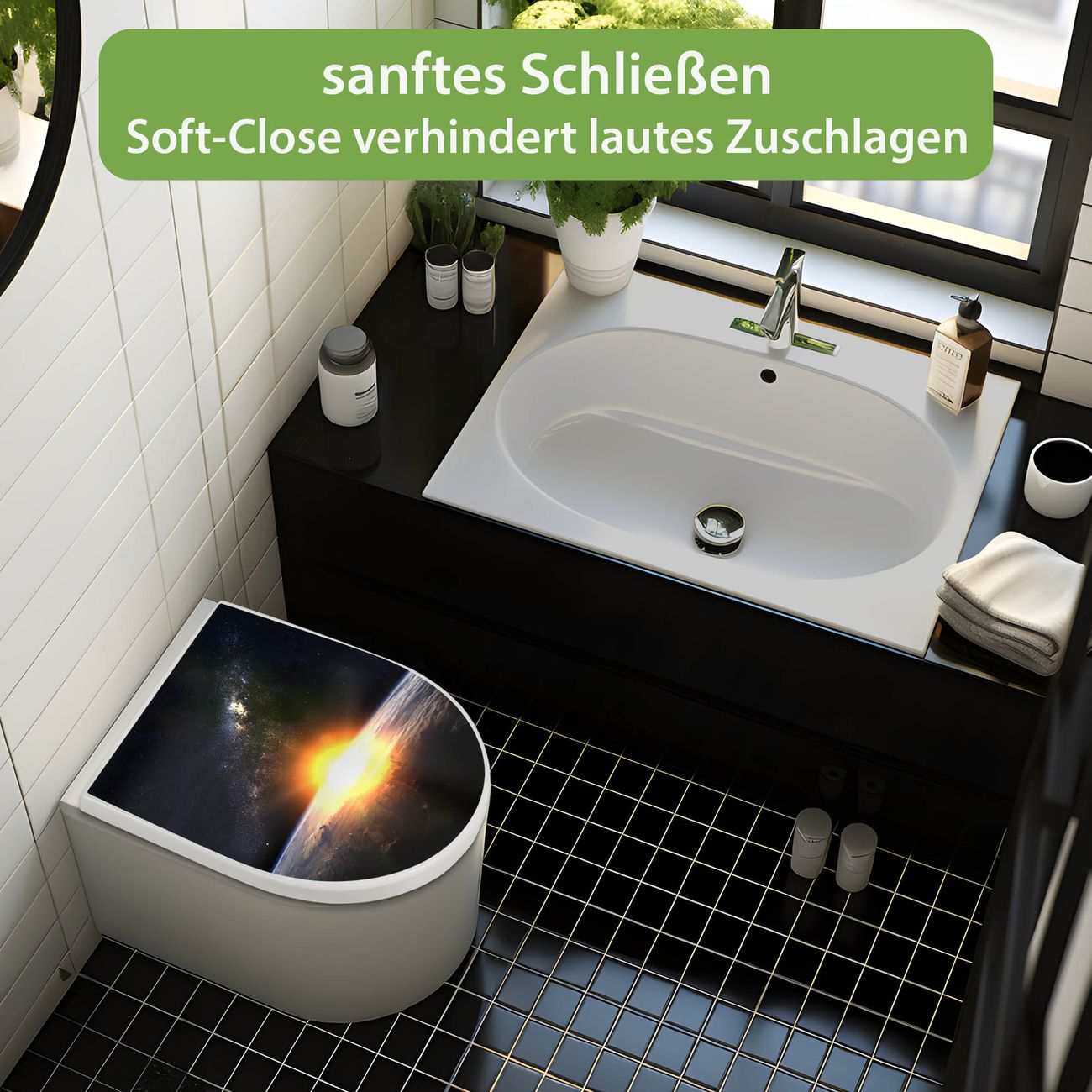 WC Sitz mit Absenkautomatik D Form Motiv Sonne im Weltall