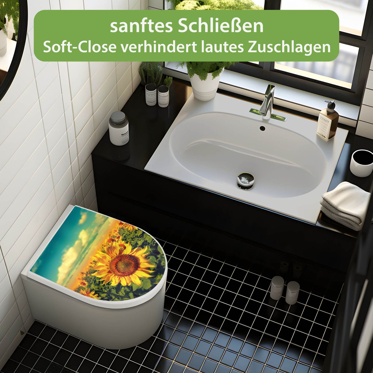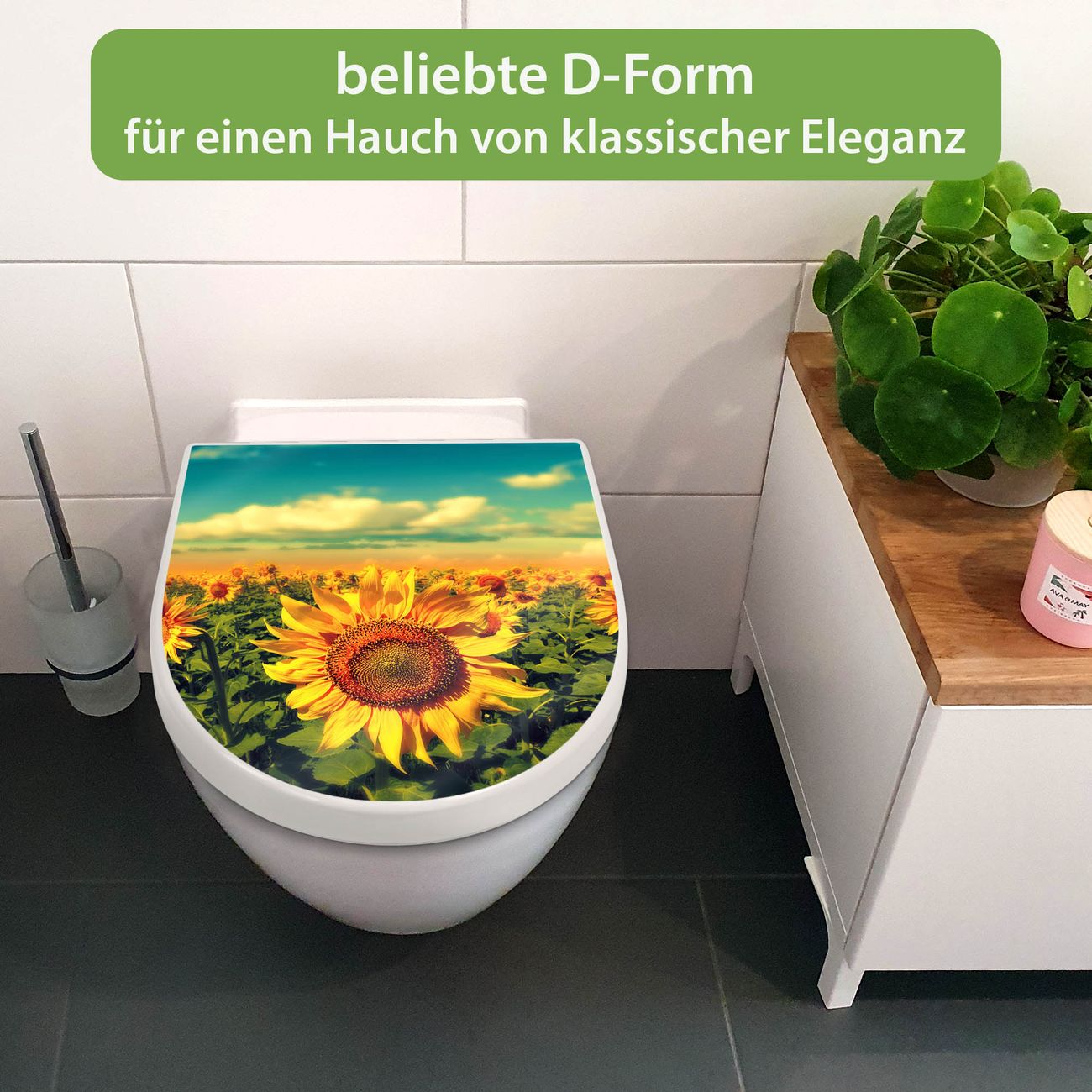 WC Sitz mit Absenkautomatik D Form Motiv Sonnenblumen