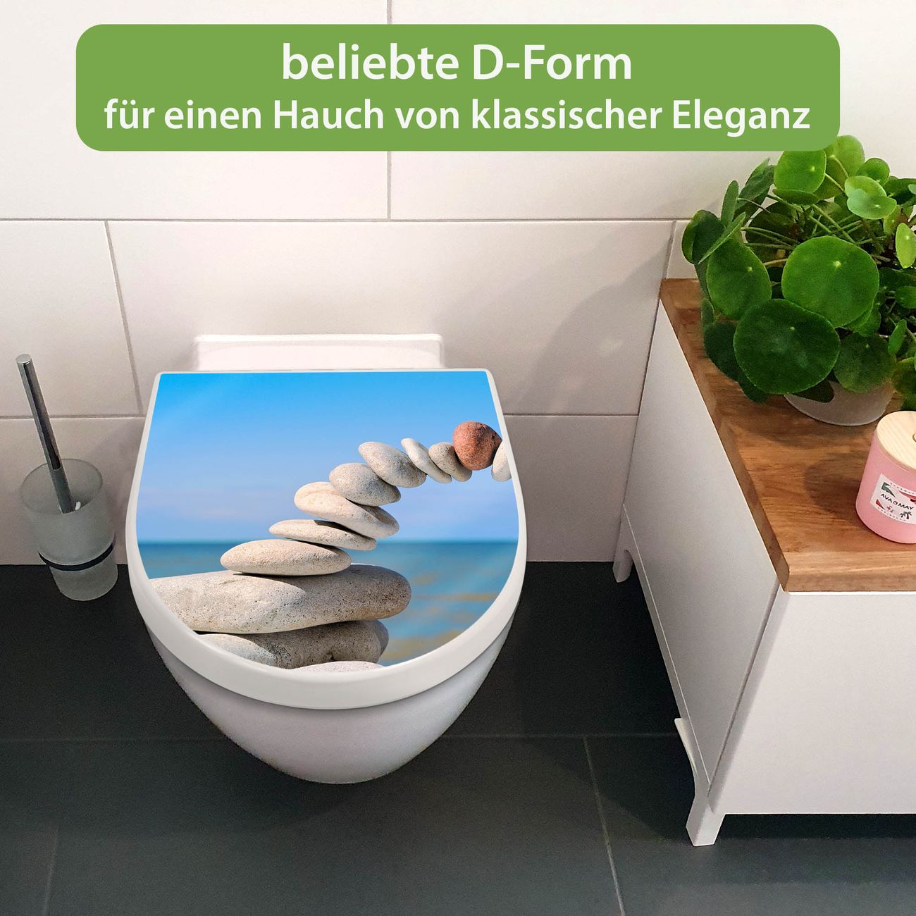 WC Sitz mit Absenkautomatik D Form Motiv Steine&Meer