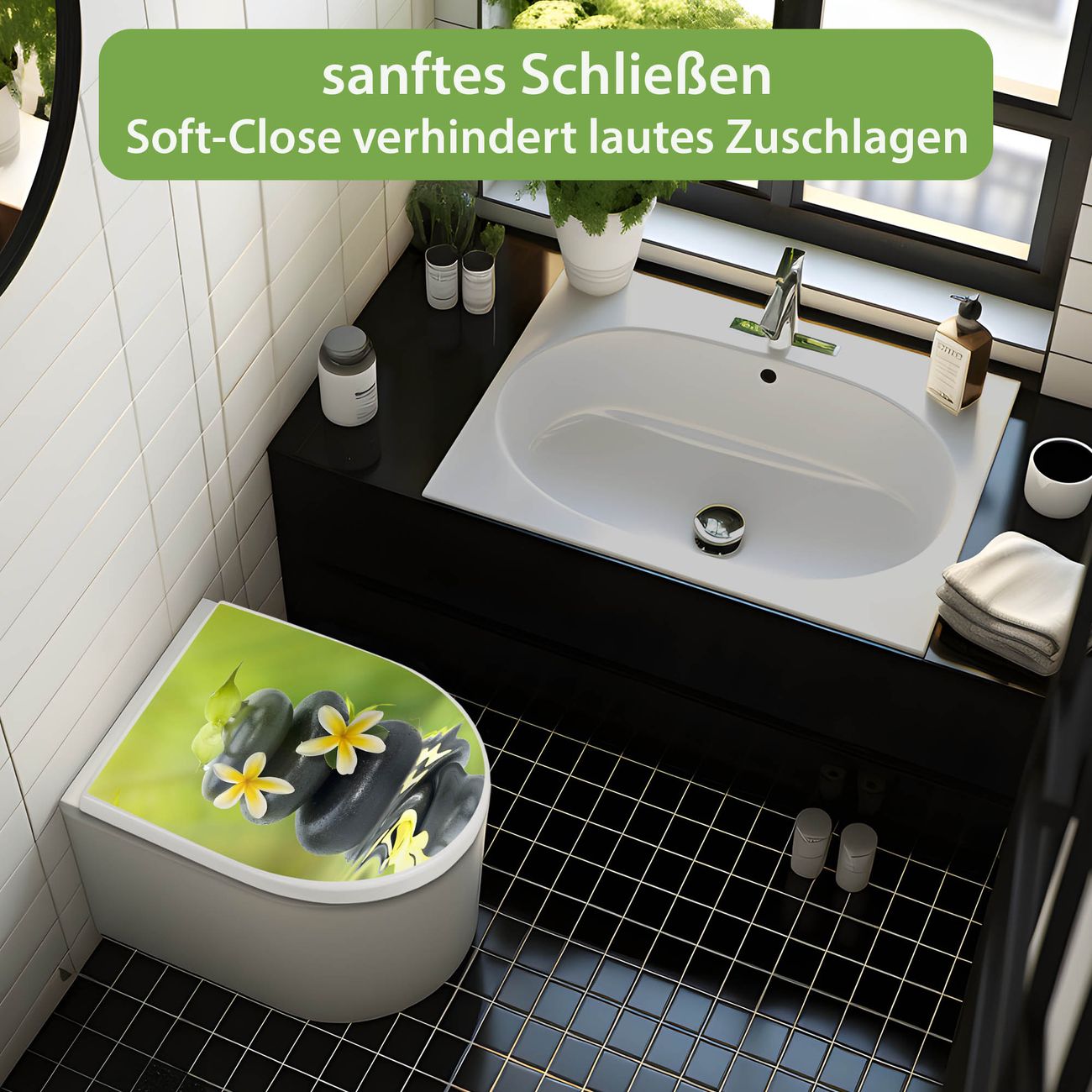 WC Sitz mit Absenkautomatik D Form Motiv Steine & Relax 4