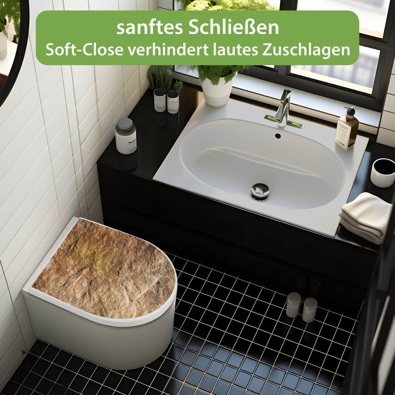 WC Sitz mit Absenkautomatik D Form Motiv Steinstruktur