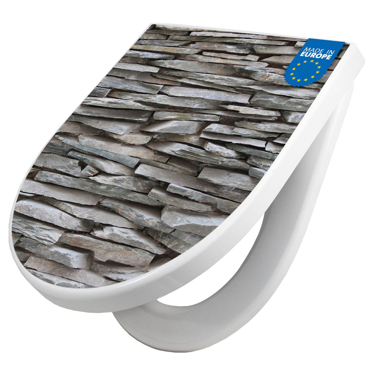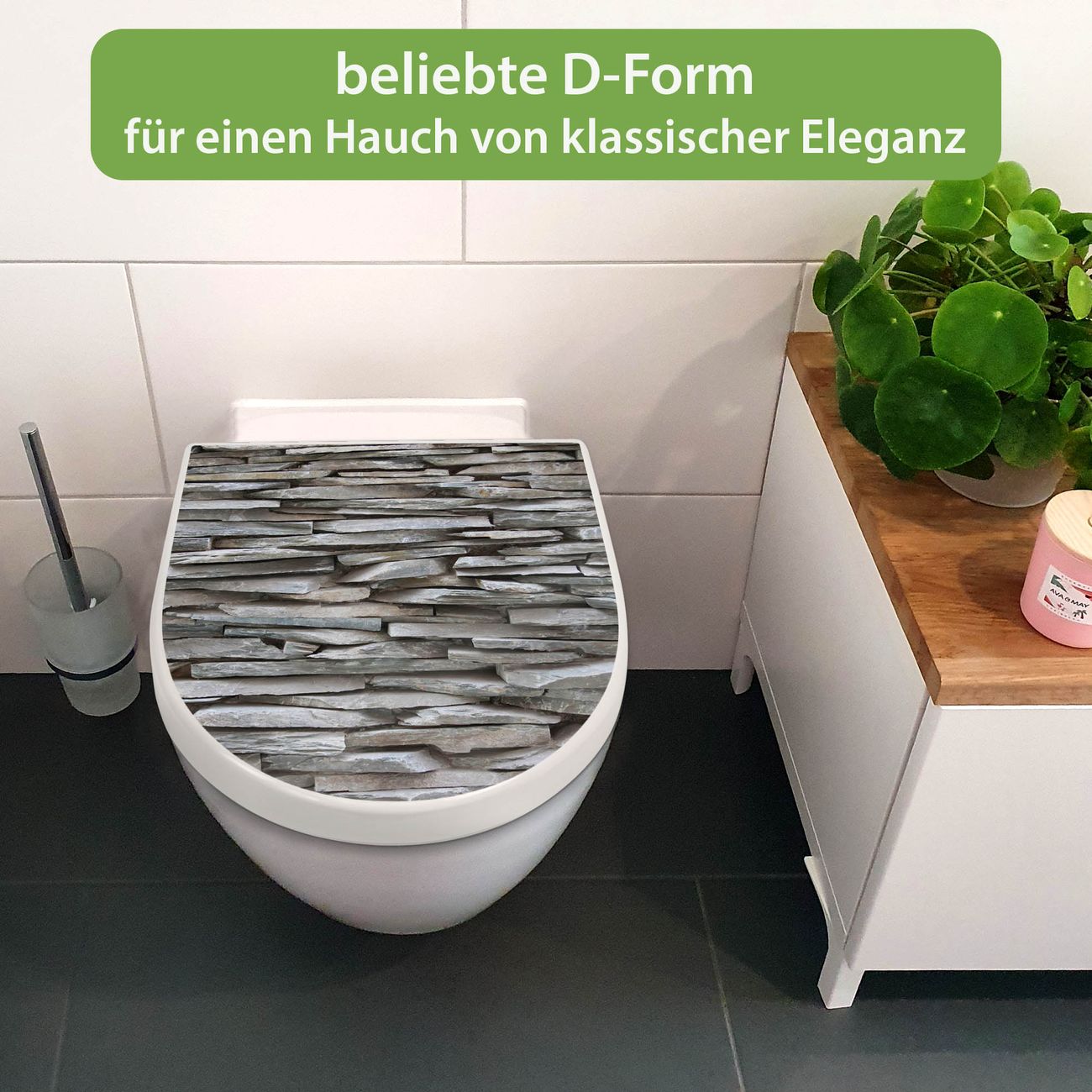 WC Sitz mit Absenkautomatik D Form Motiv Steinwand
