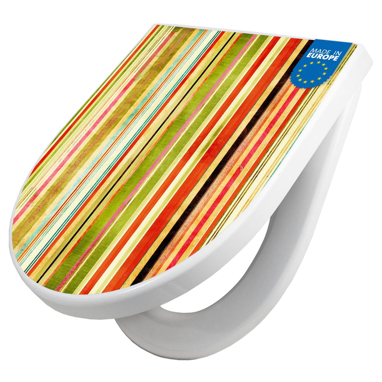 WC Sitz mit Absenkautomatik D Form Motiv Streifen