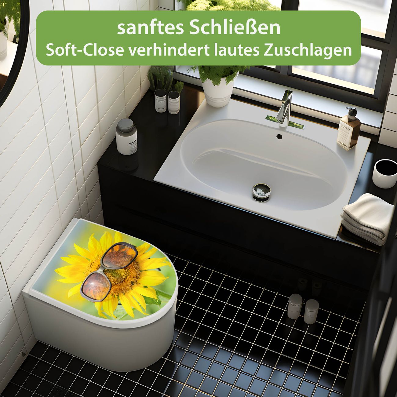 WC Sitz mit Absenkautomatik D Form Motiv Sunny