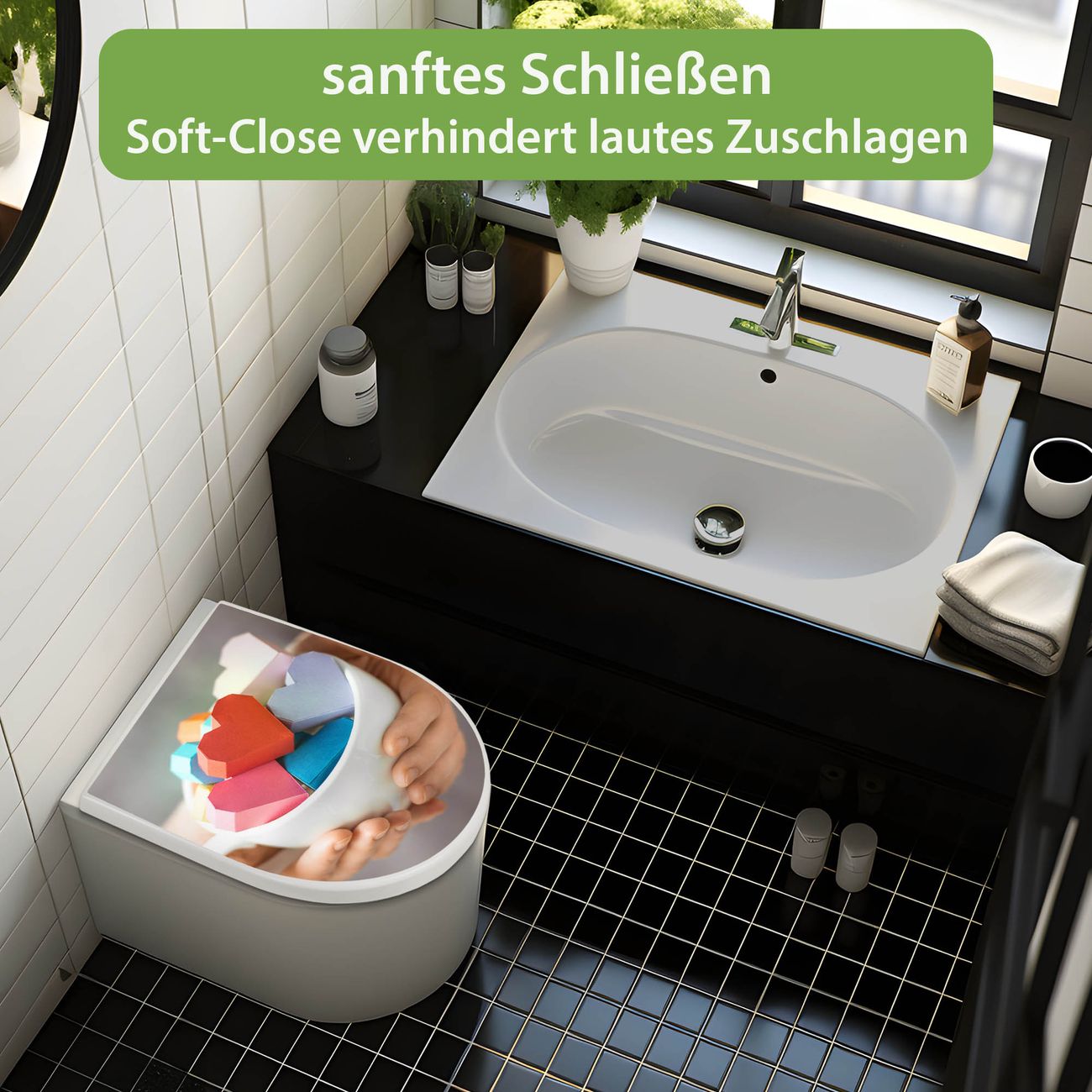 WC Sitz mit Absenkautomatik D Form Motiv Tasse voller Herzen