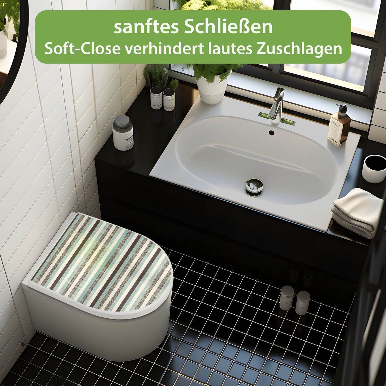 WC Sitz mit Absenkautomatik D Form Motiv Textile Streifen