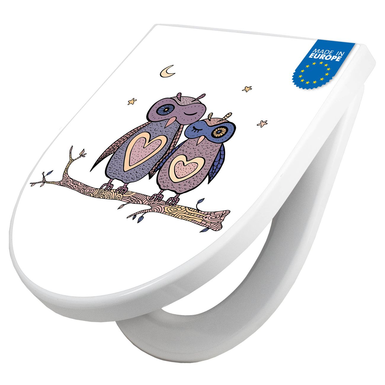 WC Sitz mit Absenkautomatik D Form Motiv Verliebte Eulen