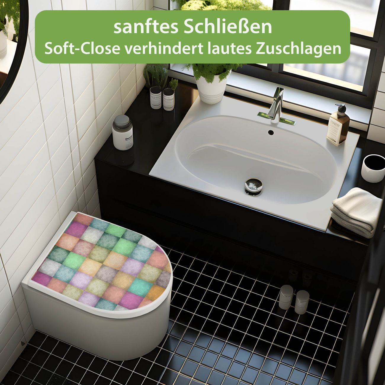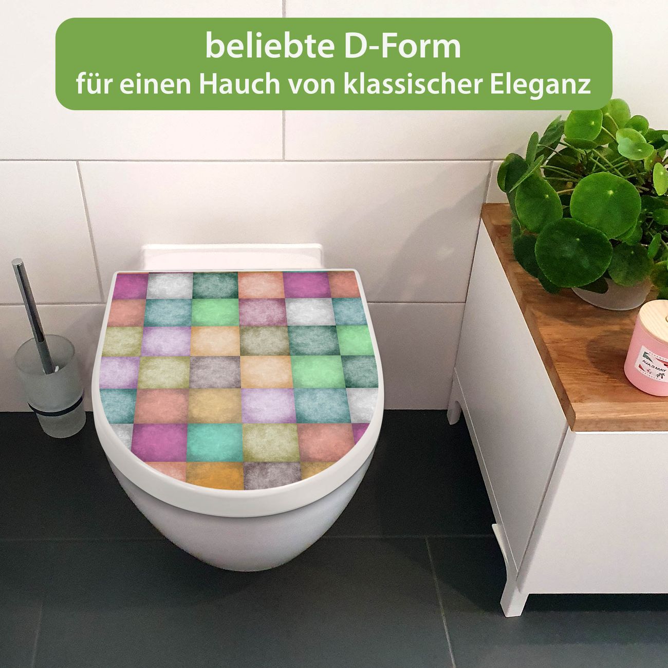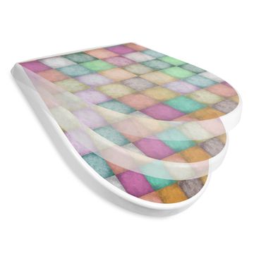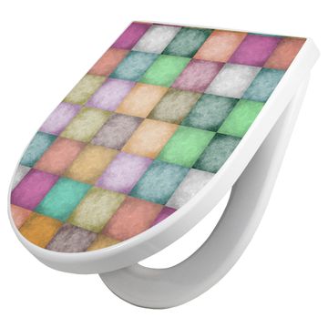 WC Sitz mit Absenkautomatik D Form Motiv Verwaschene Quadrate