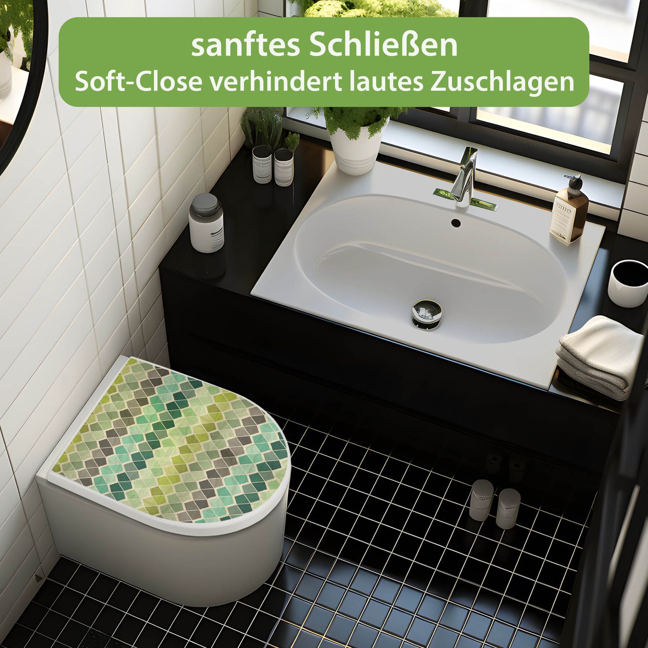WC Sitz mit Absenkautomatik D Form Motiv Vier Farben Grün