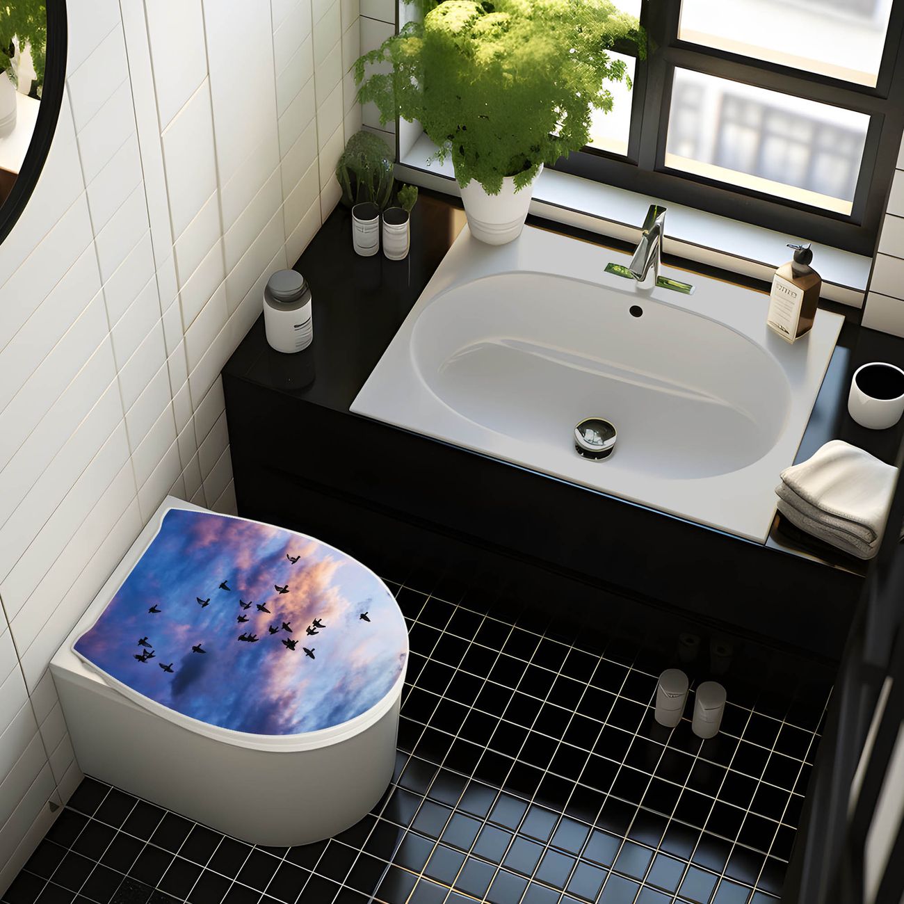 Premium WC-Sitz Softclose Absenkautomatik Motiv Vögel am Himmel 3
