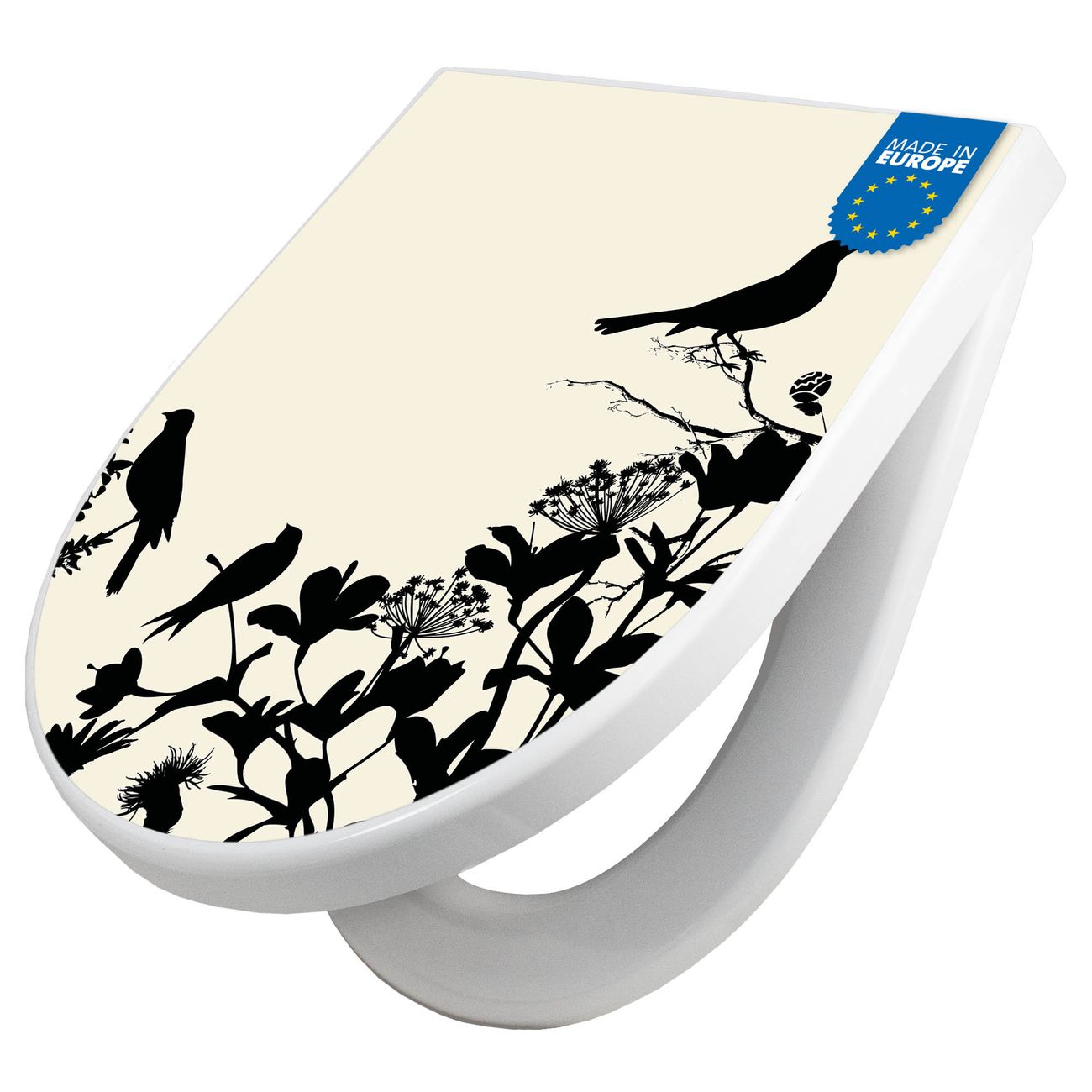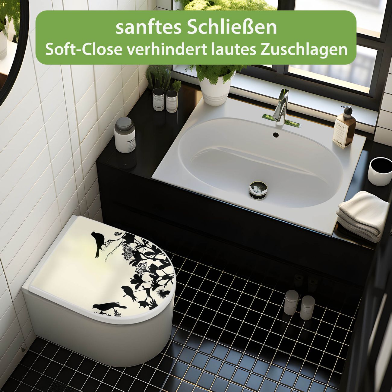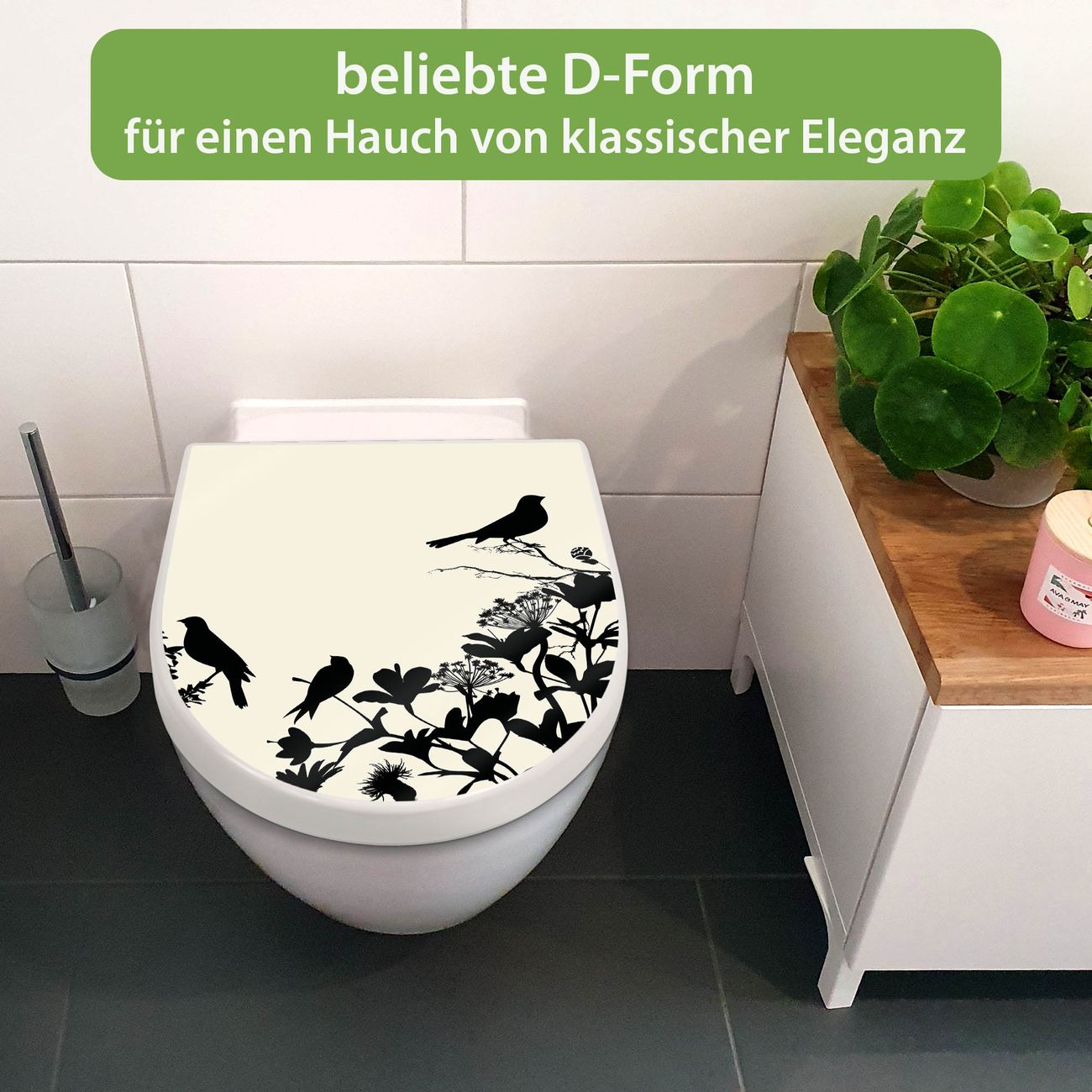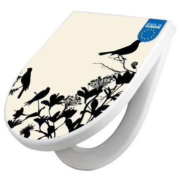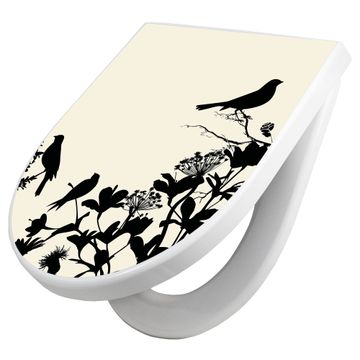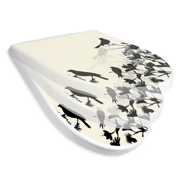 Premium WC-Sitz Softclose Absenkautomatik Motiv Vögel Schattenriß