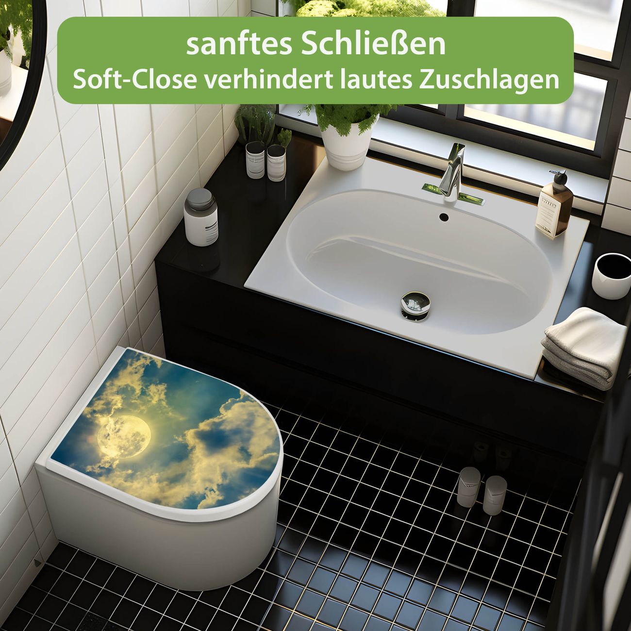 WC Sitz mit Absenkautomatik D Form Motiv Vollmond 2