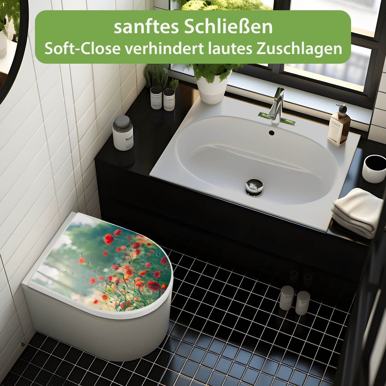 WC Sitz mit Absenkautomatik D Form Motiv Waldmohn