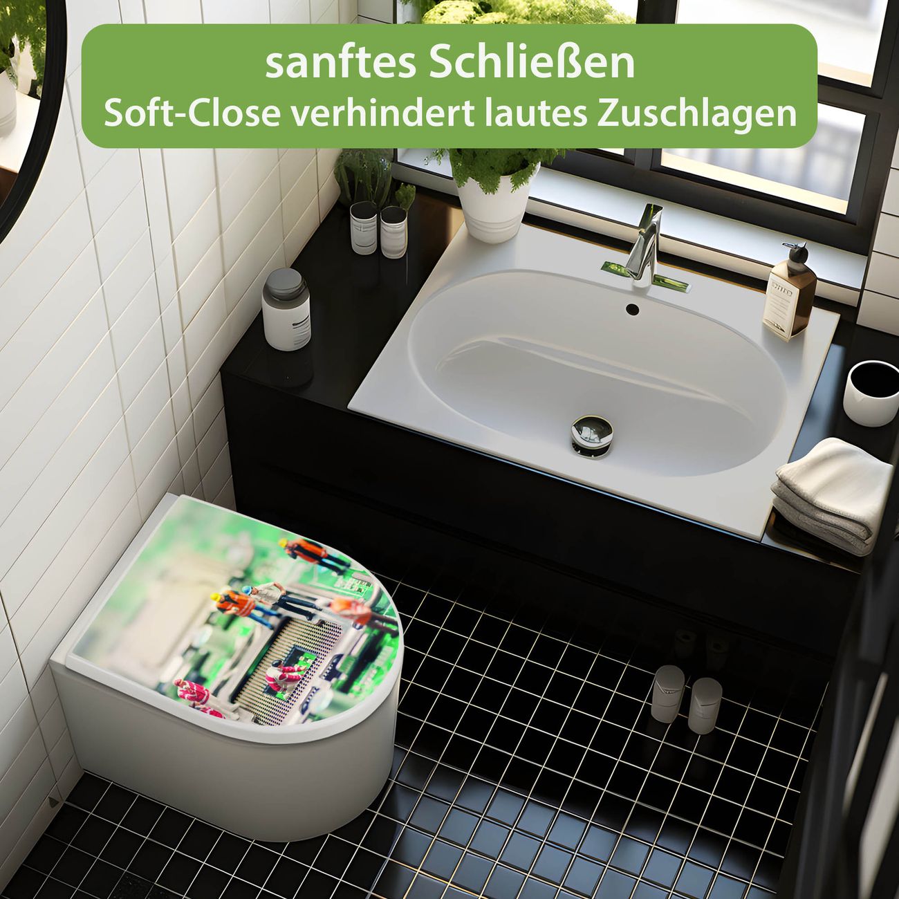 WC Sitz mit Absenkautomatik D Form Motiv Wartungsarbeiten