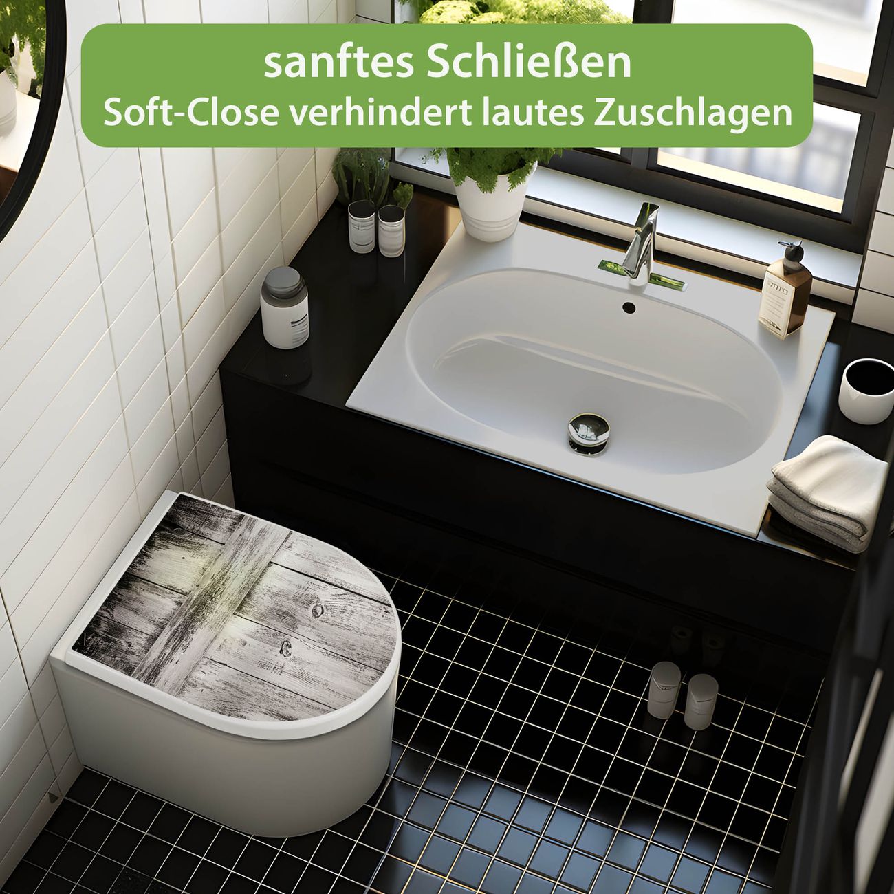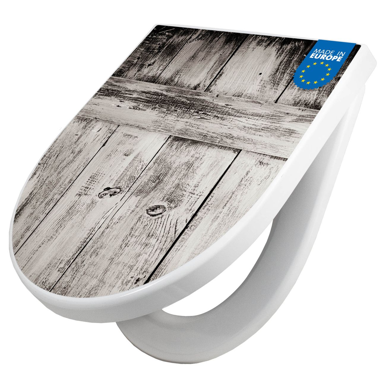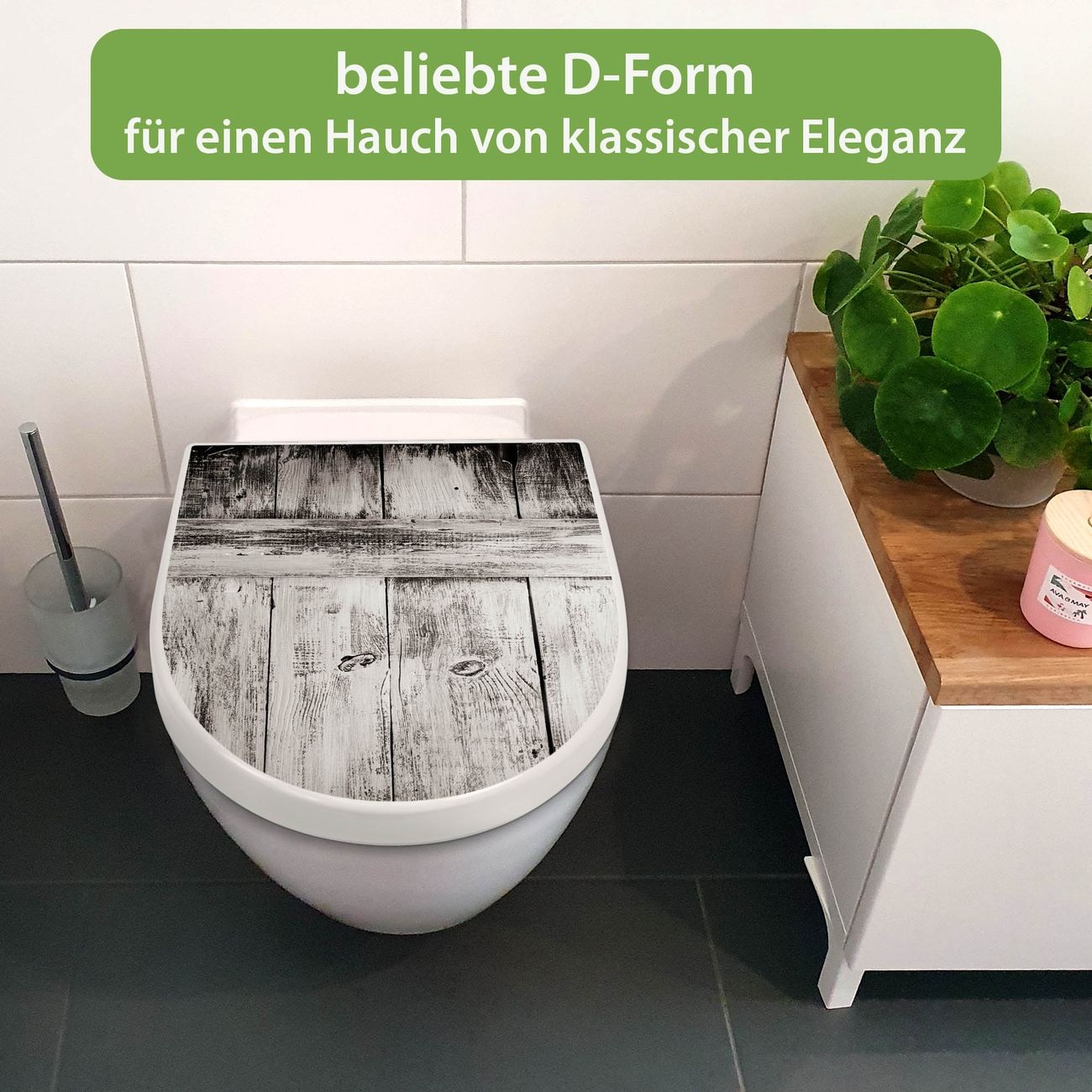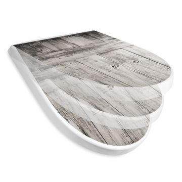 WC Sitz mit Absenkautomatik D Form Motiv weiße Bretter