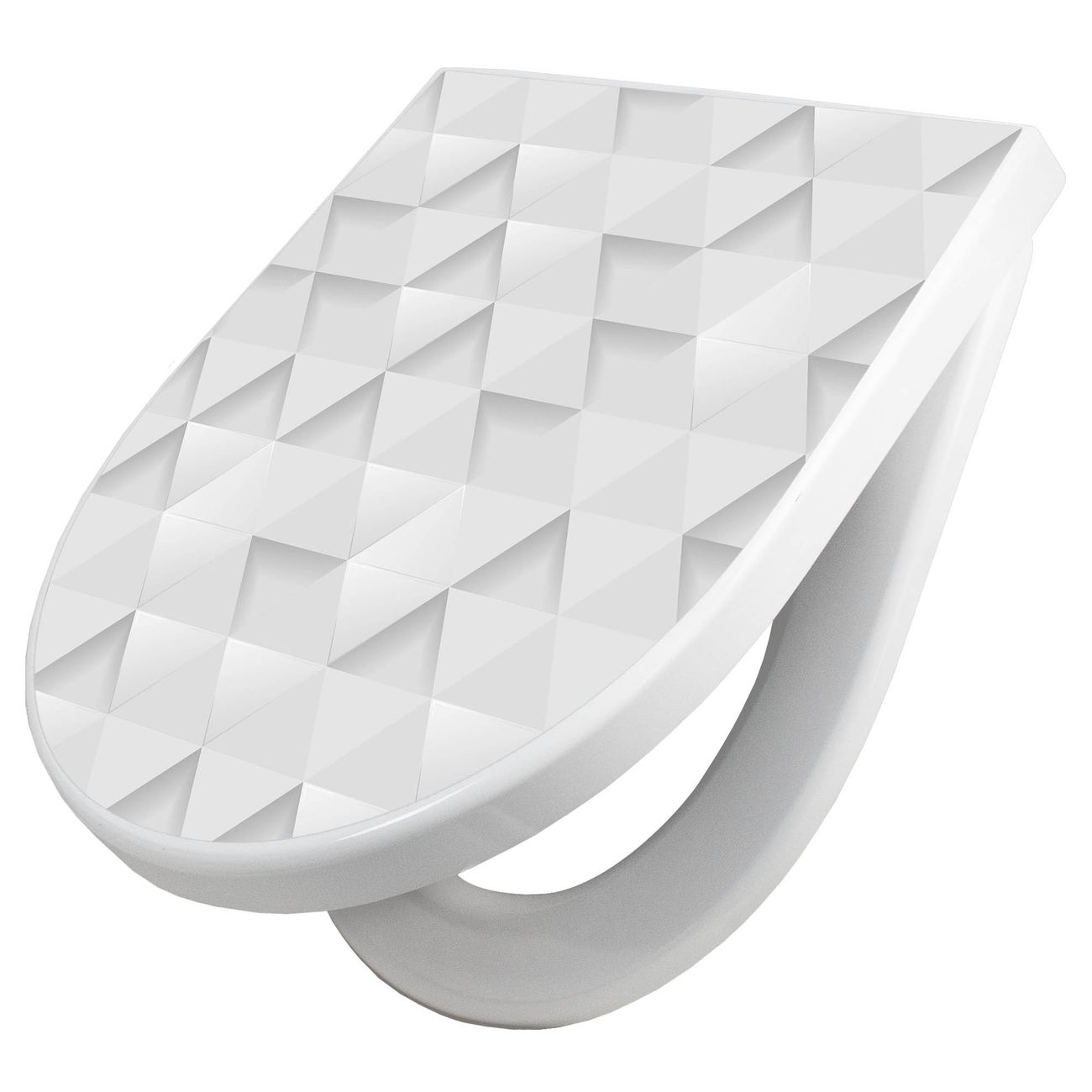 WC Sitz mit Absenkautomatik D Form Motiv Weisse Dreiecke