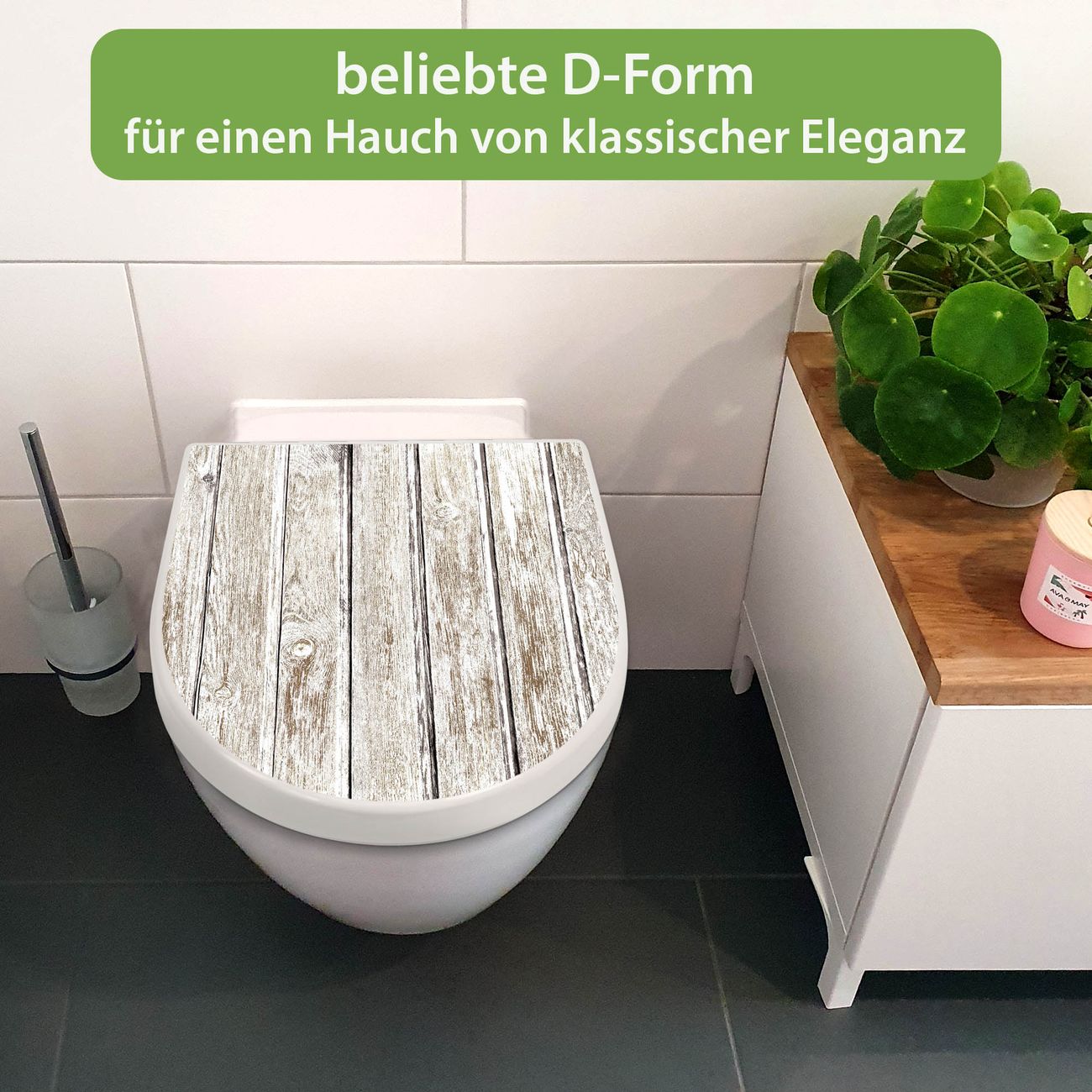 WC Sitz mit Absenkautomatik D Form Motiv Weißes Holz