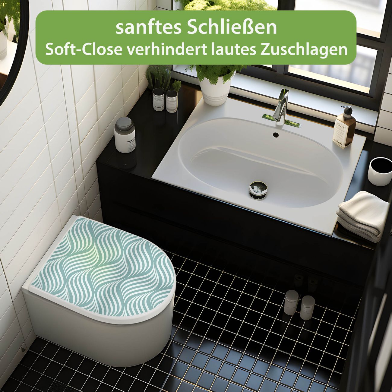WC Sitz mit Absenkautomatik D Form Motiv Wellen Lindgrün