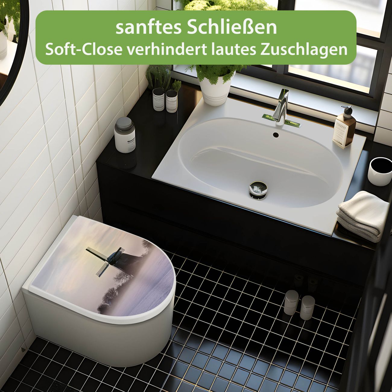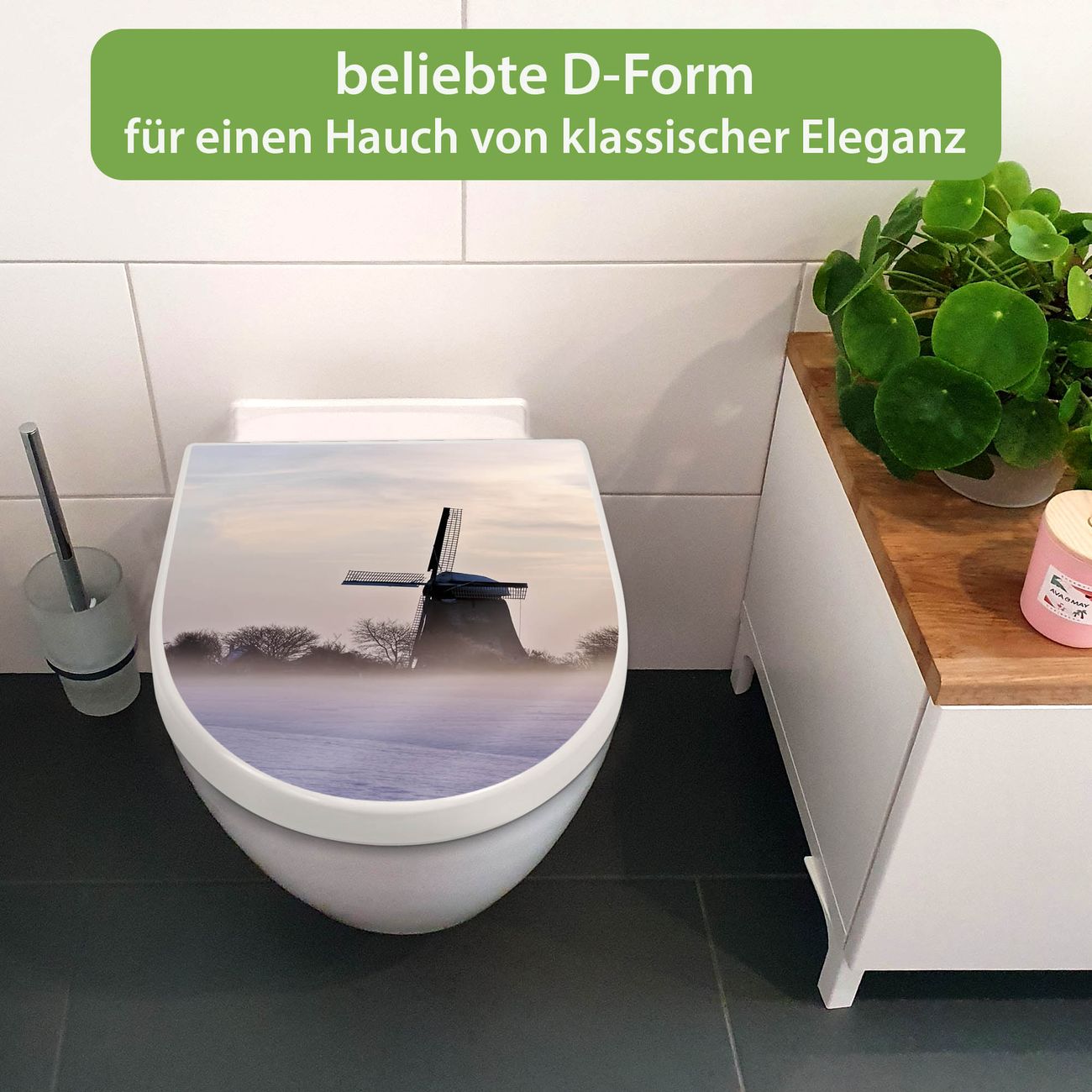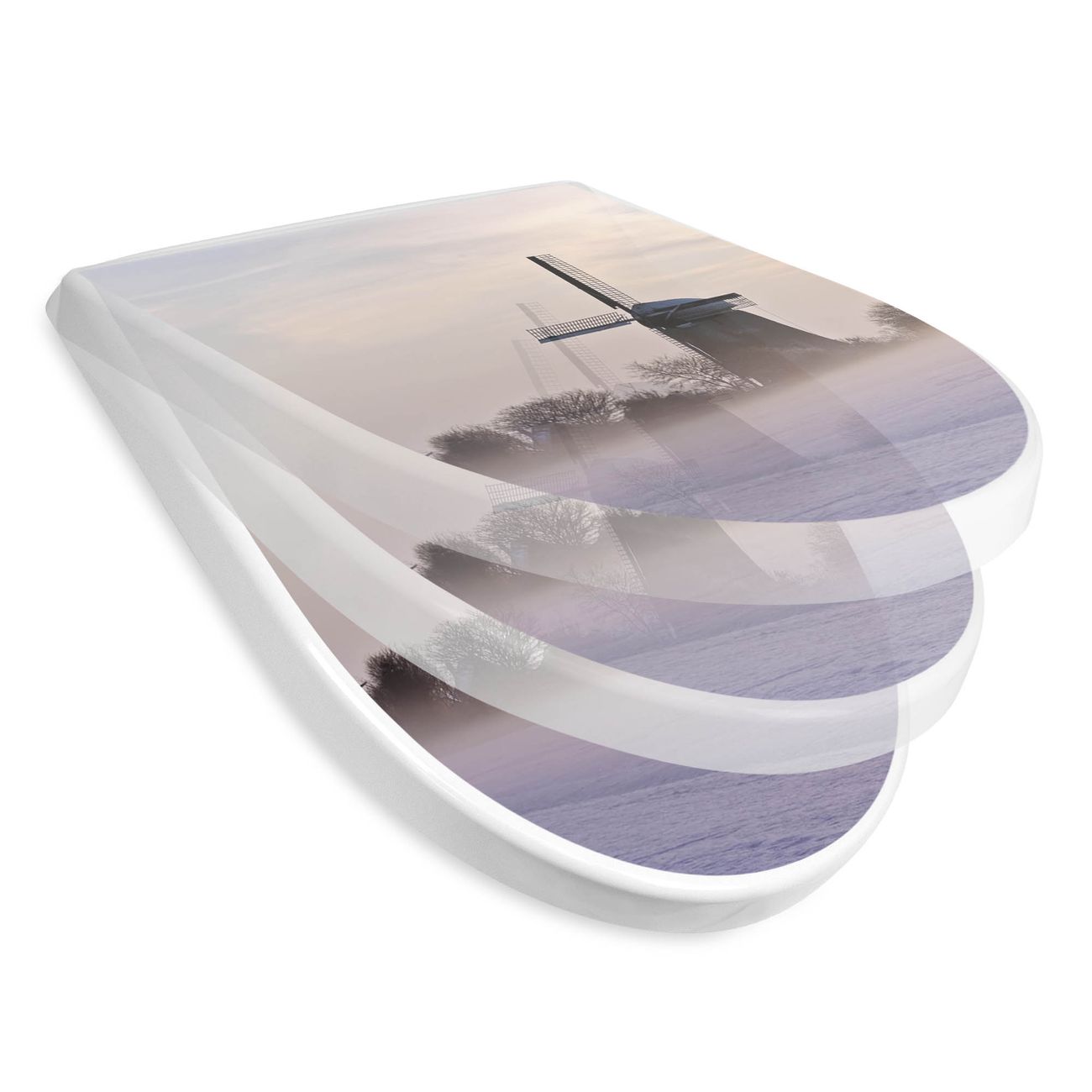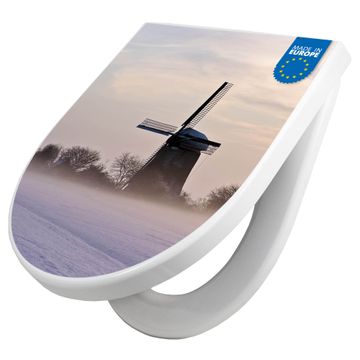 WC Sitz mit Absenkautomatik D Form Motiv Windmühle im Winter