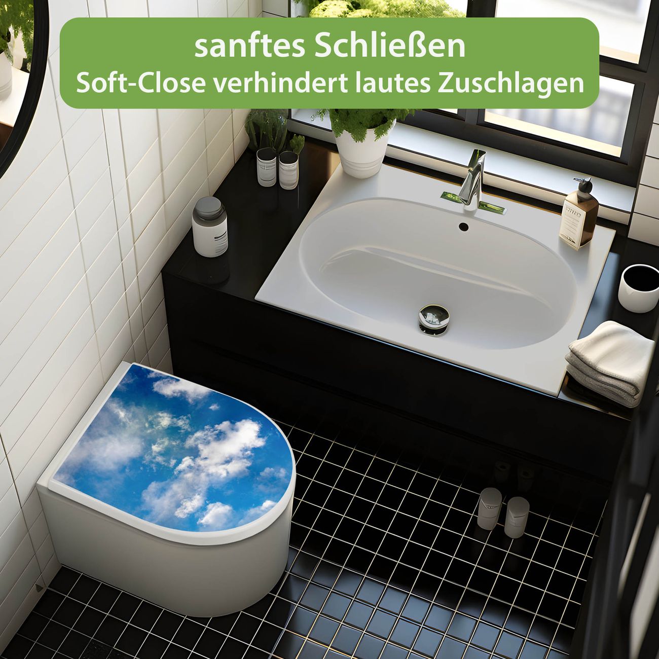 WC Sitz mit Absenkautomatik D Form Motiv Wolken 2