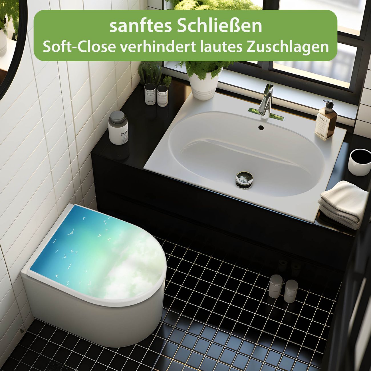 WC Sitz mit Absenkautomatik D Form Motiv Wolken 8