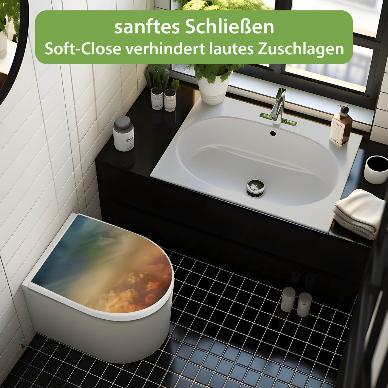 WC Sitz mit Absenkautomatik D Form Motiv Wolken in der Dämmerung