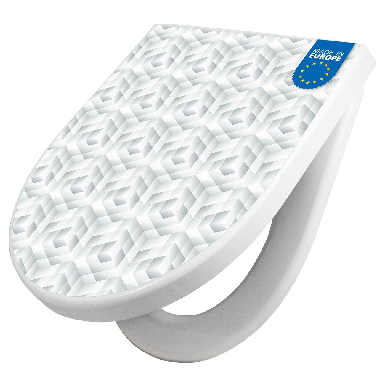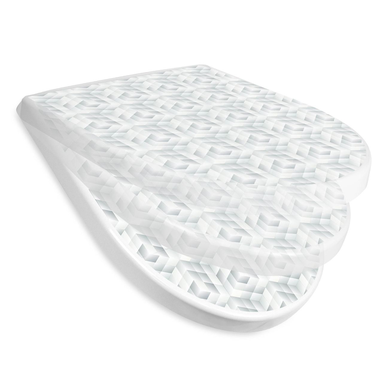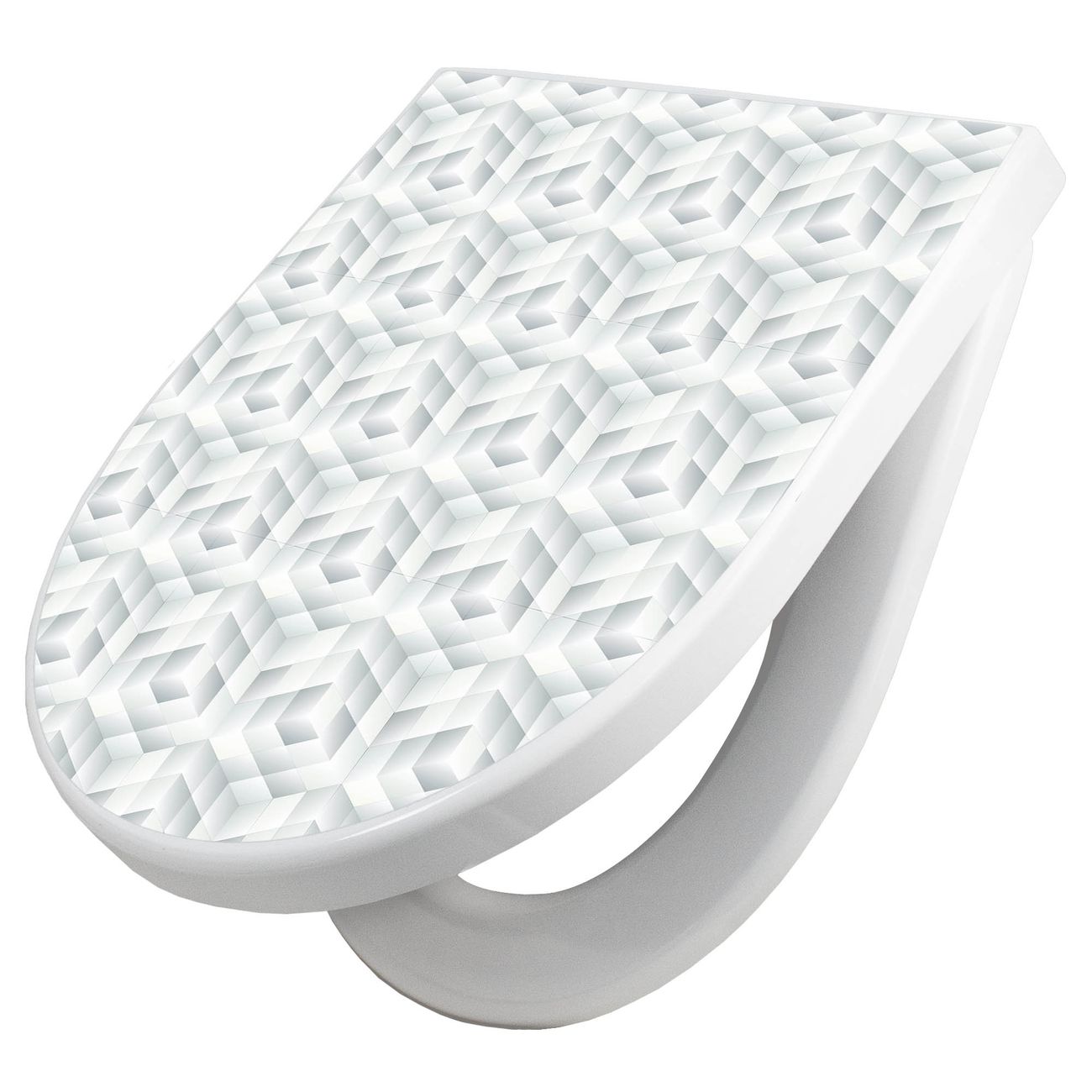 WC Sitz mit Absenkautomatik D Form Motiv Würfel Grau