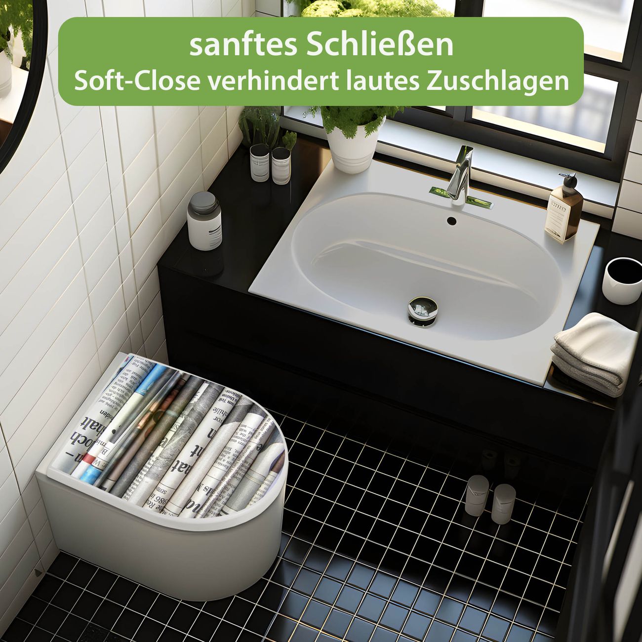 WC Sitz mit Absenkautomatik D Form Motiv Zeitungen