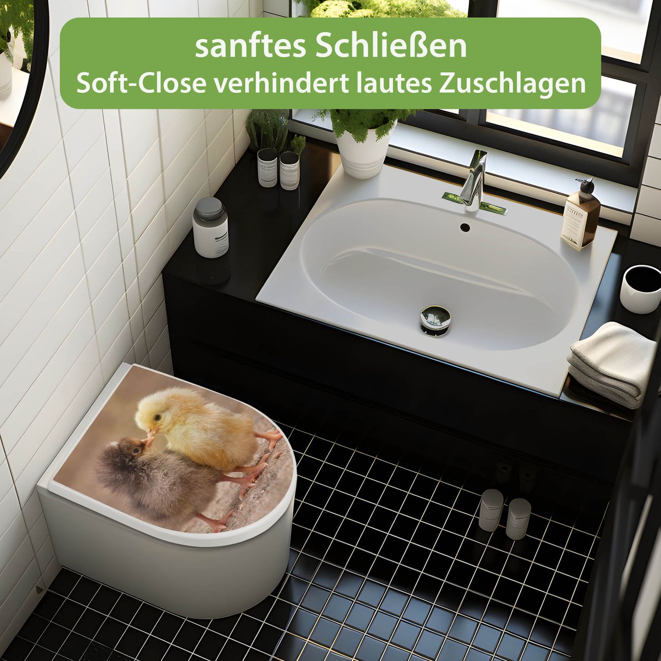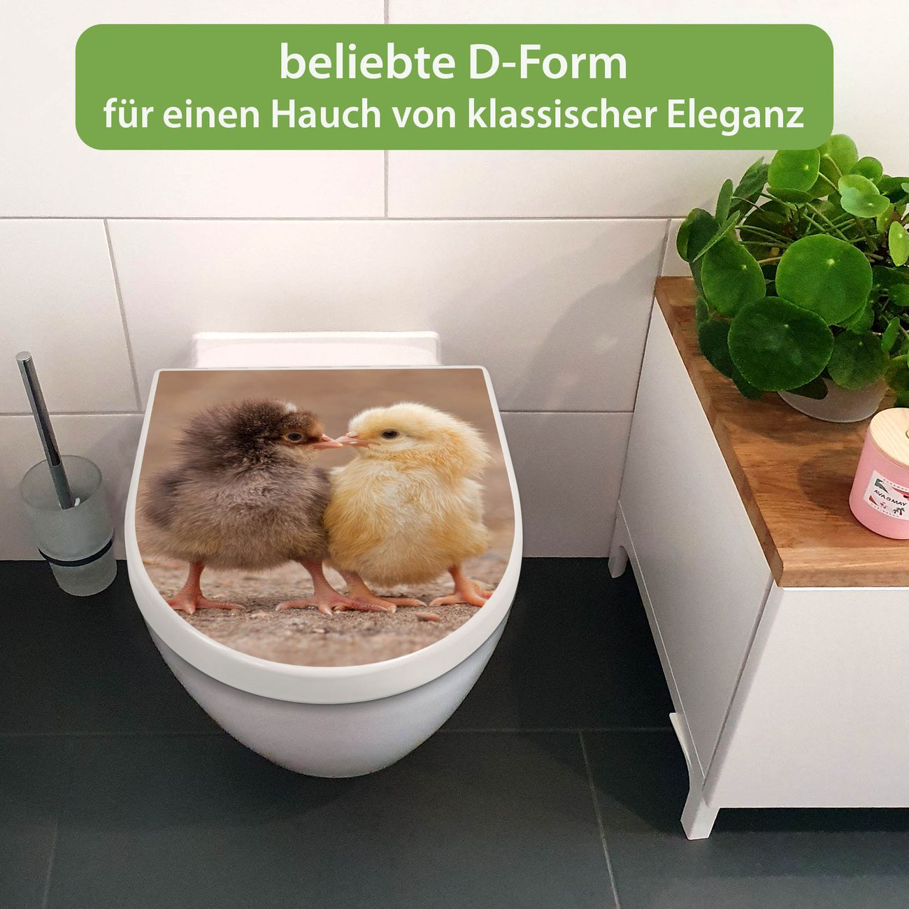 WC Sitz mit Absenkautomatik D Form Motiv Zwei Küken