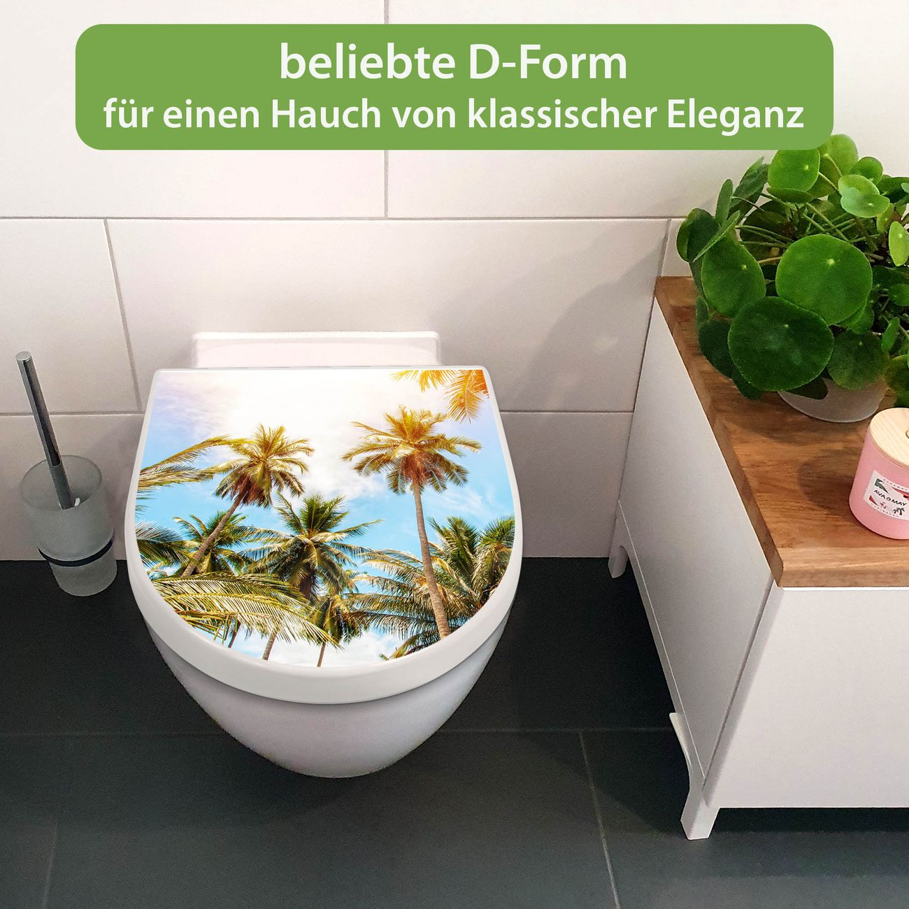WC Sitz mit Absenkautomatik D Form Motiv Zwischen Palmen