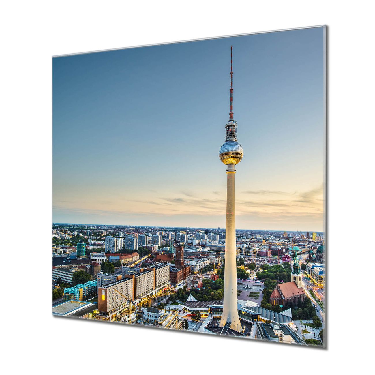 Unsere einzigartigen Glasbilder im Querformat von banjado mit Motiv Alexanderplatz sind der absolute Hingucker! Unsere Banjado Glasbilder sind sehr begehrt, weil sie top verarbeitet sind und sich ganz leicht montieren lassen. Schon mit wenigen Handgriffen hängen sie an der Wand und strahlen mit höchster brillianz. Durch die Ramenlose Herstellung schwebt das Echtglasbild förmlich an der Wand. Das Motiv erscheint besonders ausdrucksstark und hochwertig und ist hinter dem Echtglas geschützt.