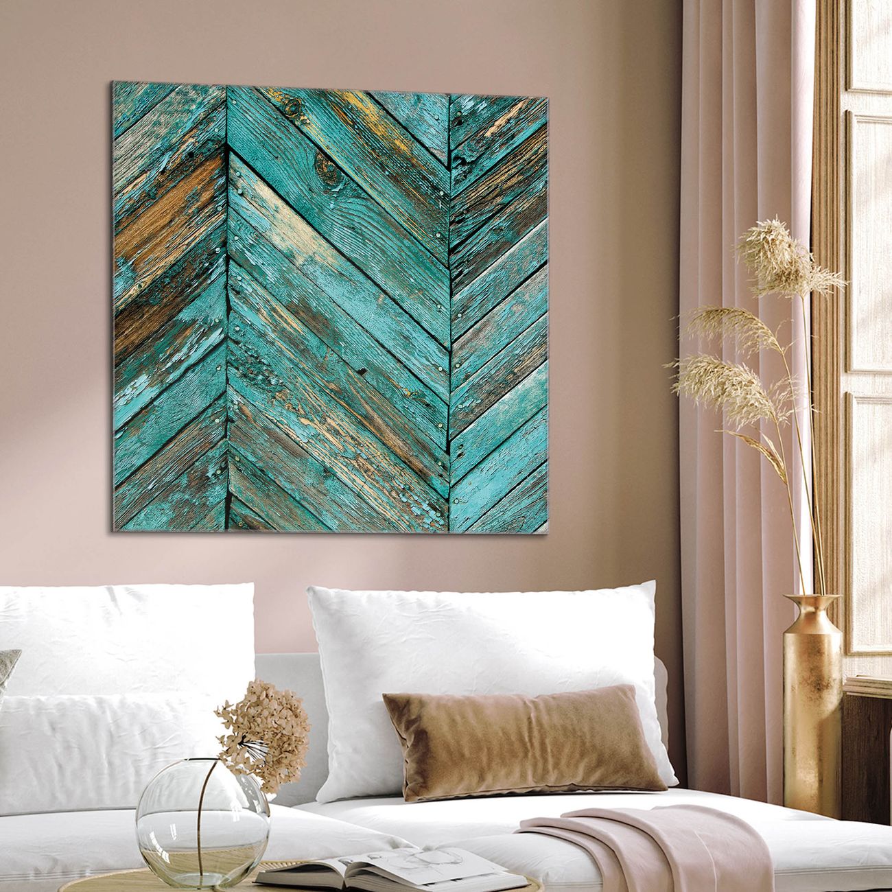 Quadratisches Wandbild aus Glas Altes Holz Blau