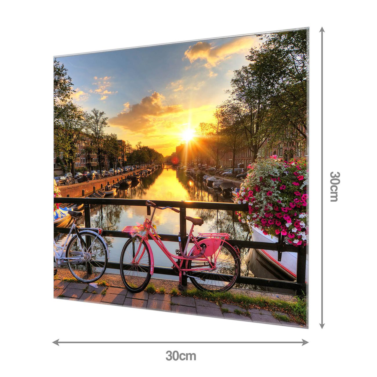 Quadratisches Wandbild aus Glas Amsterdam Mit Rad