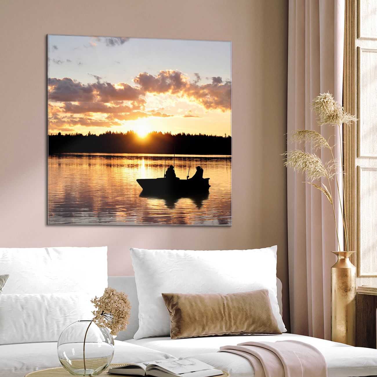 Unsere einzigartigen Glasbilder im Querformat von banjado mit Motiv Angler sind der absolute Hingucker! Unsere Banjado Glasbilder sind sehr begehrt, weil sie top verarbeitet sind und sich ganz leicht montieren lassen. Schon mit wenigen Handgriffen hängen sie an der Wand und strahlen mit höchster brillianz. Durch die Ramenlose Herstellung schwebt das Echtglasbild förmlich an der Wand. Das Motiv erscheint besonders ausdrucksstark und hochwertig und ist hinter dem Echtglas geschützt.