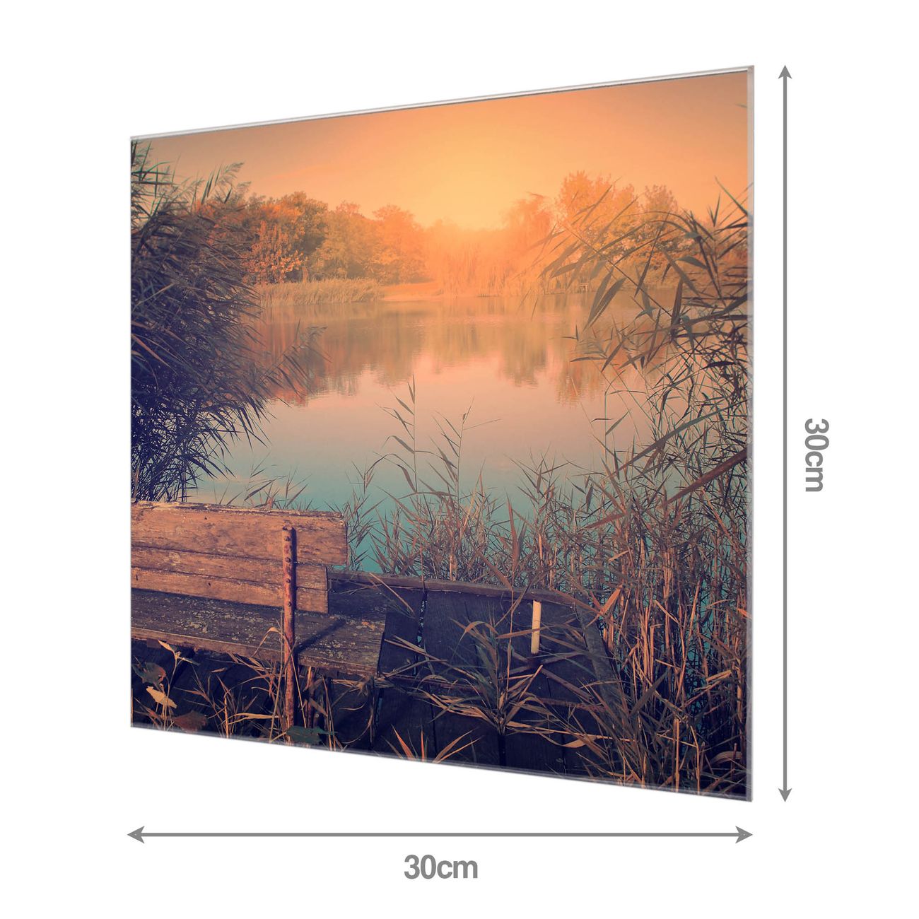 Quadratisches Wandbild aus Glas Bank Am See