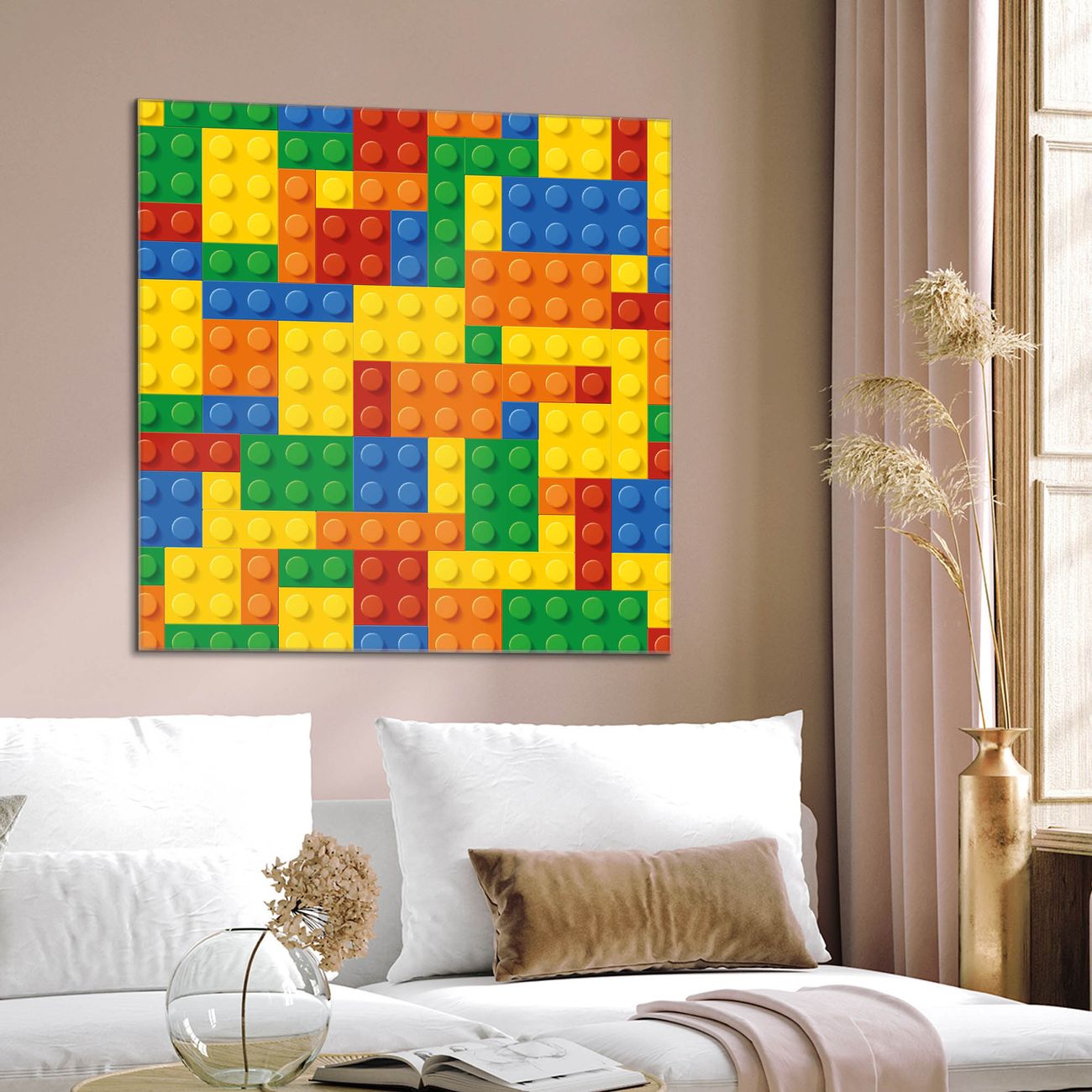 Quadratisches Wandbild aus Glas Bausteine