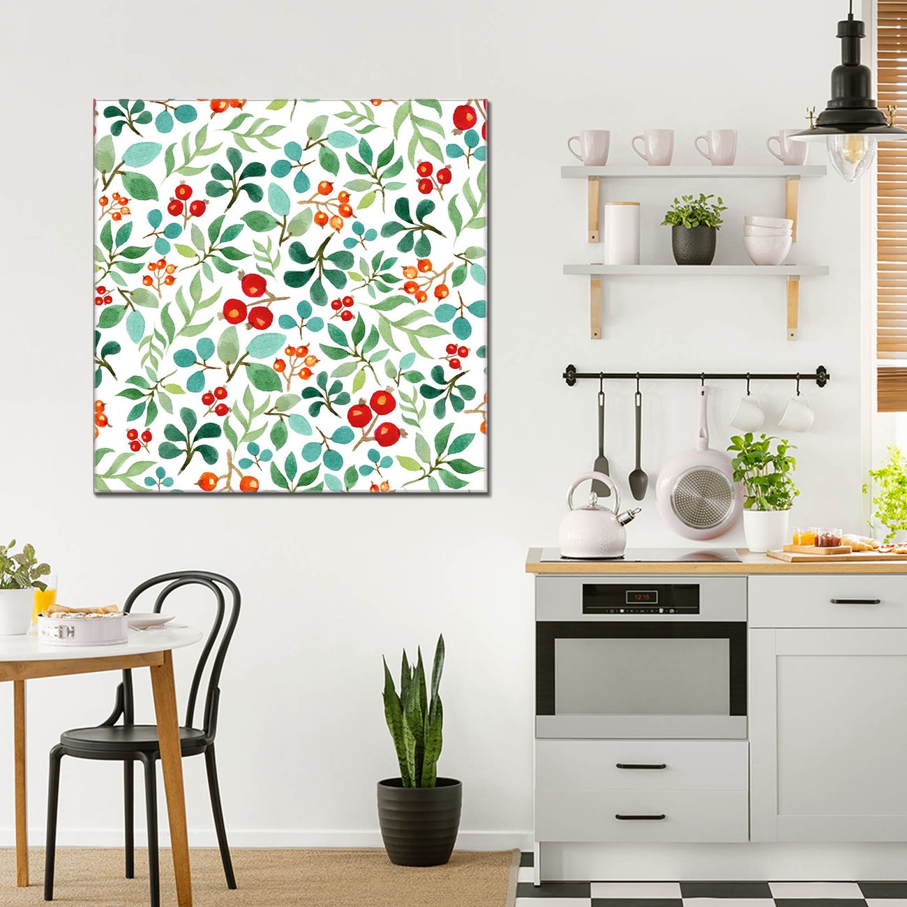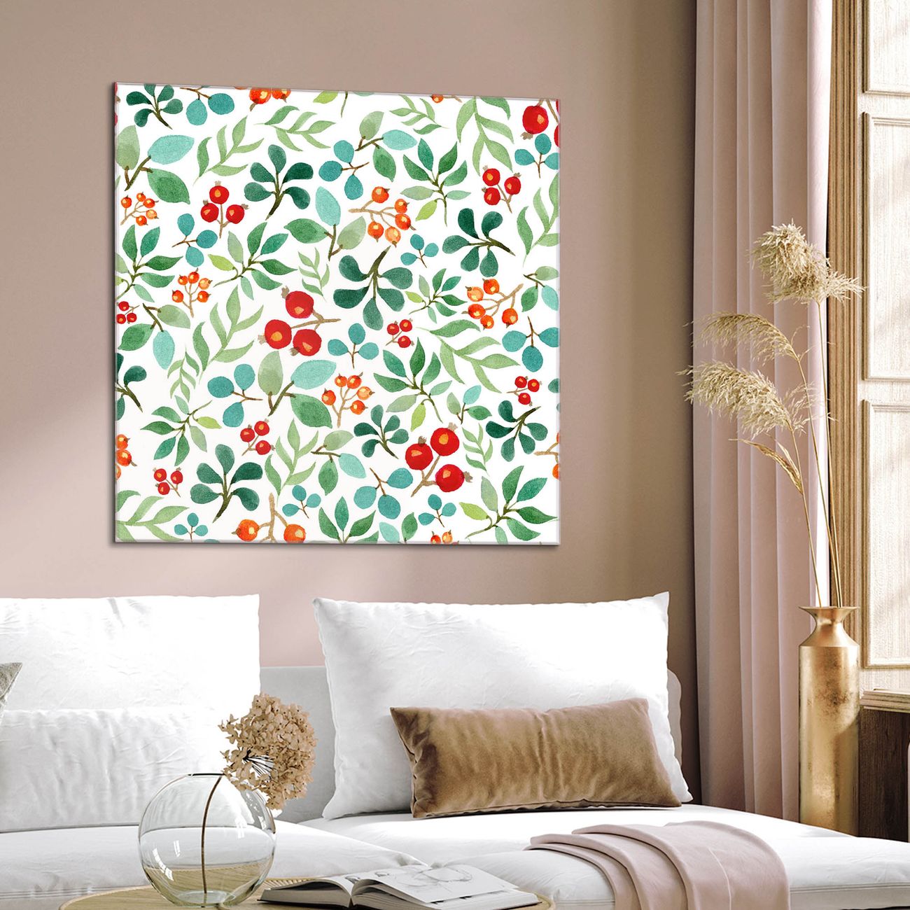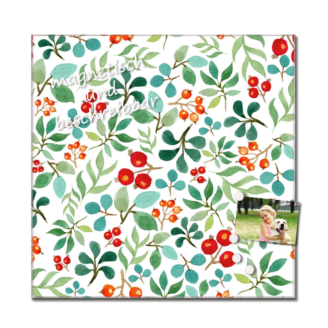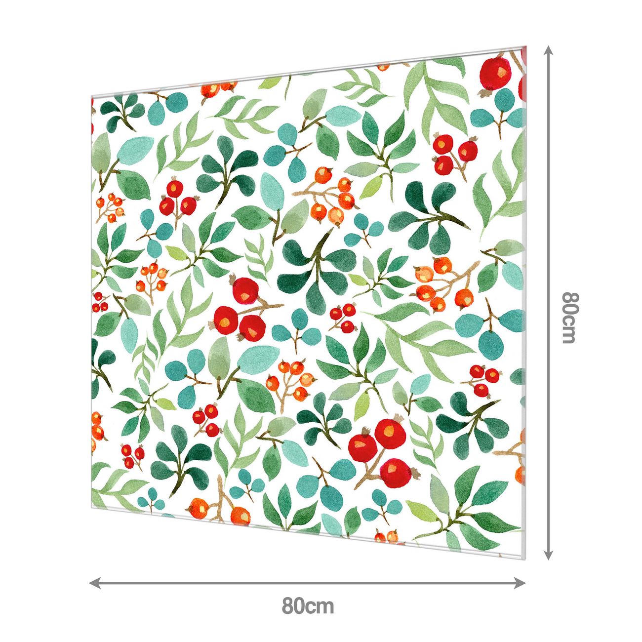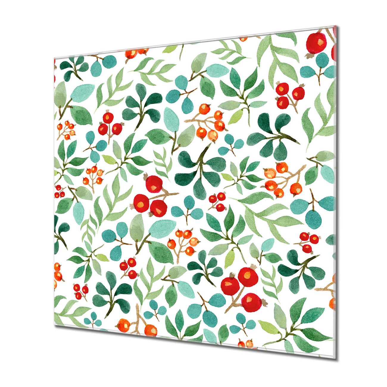 Quadratisches Wandbild aus Glas Beeren und Blätter