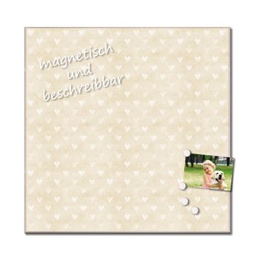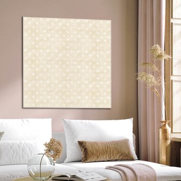 Quadratisches Wandbild aus Glas Beige Herzen