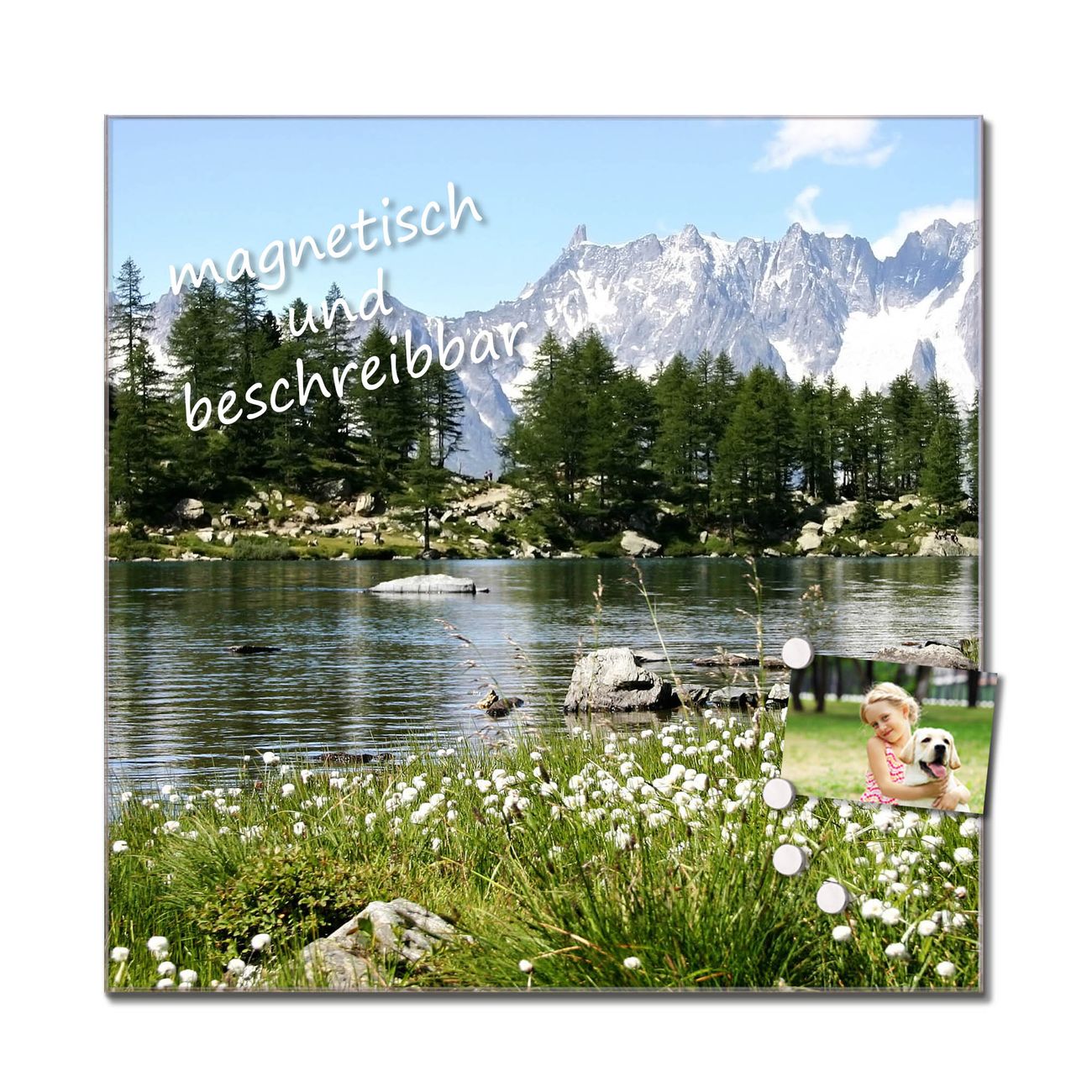 Das Glasbild besteht aus 4mm gehärtetem zertifiziertem ESG Sicherheitsglas, die Rückwand aus einem magnetischen Stahlblech. Durch die superflache Bauweise haben Sie die Wahl aus einer Vielzahl von Befestigungsmöglichkeiten. Sie können das Wandbild mit einem Montagekleber superflach an die Wand kleben oder Sie wählen eines unserer passenden Befestigungssets, welches eine optimale Montage garantiert. Durch die mitgelieferten 4 Neodym-Magnete ist Ihr Glaswandbild sofort einsatzbereit. Wir sind ein kleines Team aus dem Herzen von Sachsen und fertigen alle Artikel von Hand für Sie an. Wir entwerfen unsere Produkte selbst mit großer Liebe zum Detail.