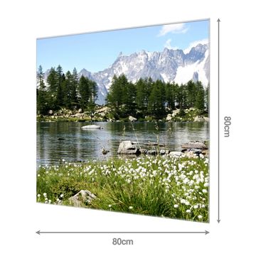 Unsere einzigartigen Glasbilder im Querformat von banjado mit Motiv Bergidylle sind der absolute Hingucker! Unsere Banjado Glasbilder sind sehr begehrt, weil sie top verarbeitet sind und sich ganz leicht montieren lassen. Schon mit wenigen Handgriffen hängen sie an der Wand und strahlen mit höchster brillianz. Durch die Ramenlose Herstellung schwebt das Echtglasbild förmlich an der Wand. Das Motiv erscheint besonders ausdrucksstark und hochwertig und ist hinter dem Echtglas geschützt.